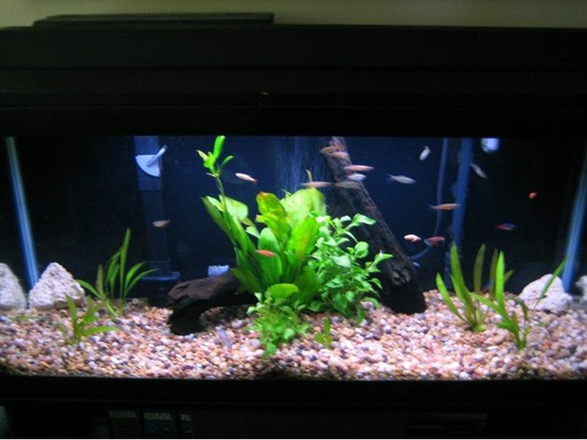 36x17x12 with a 20w power Glo light Bio wheel power filter (penguin) 350 +