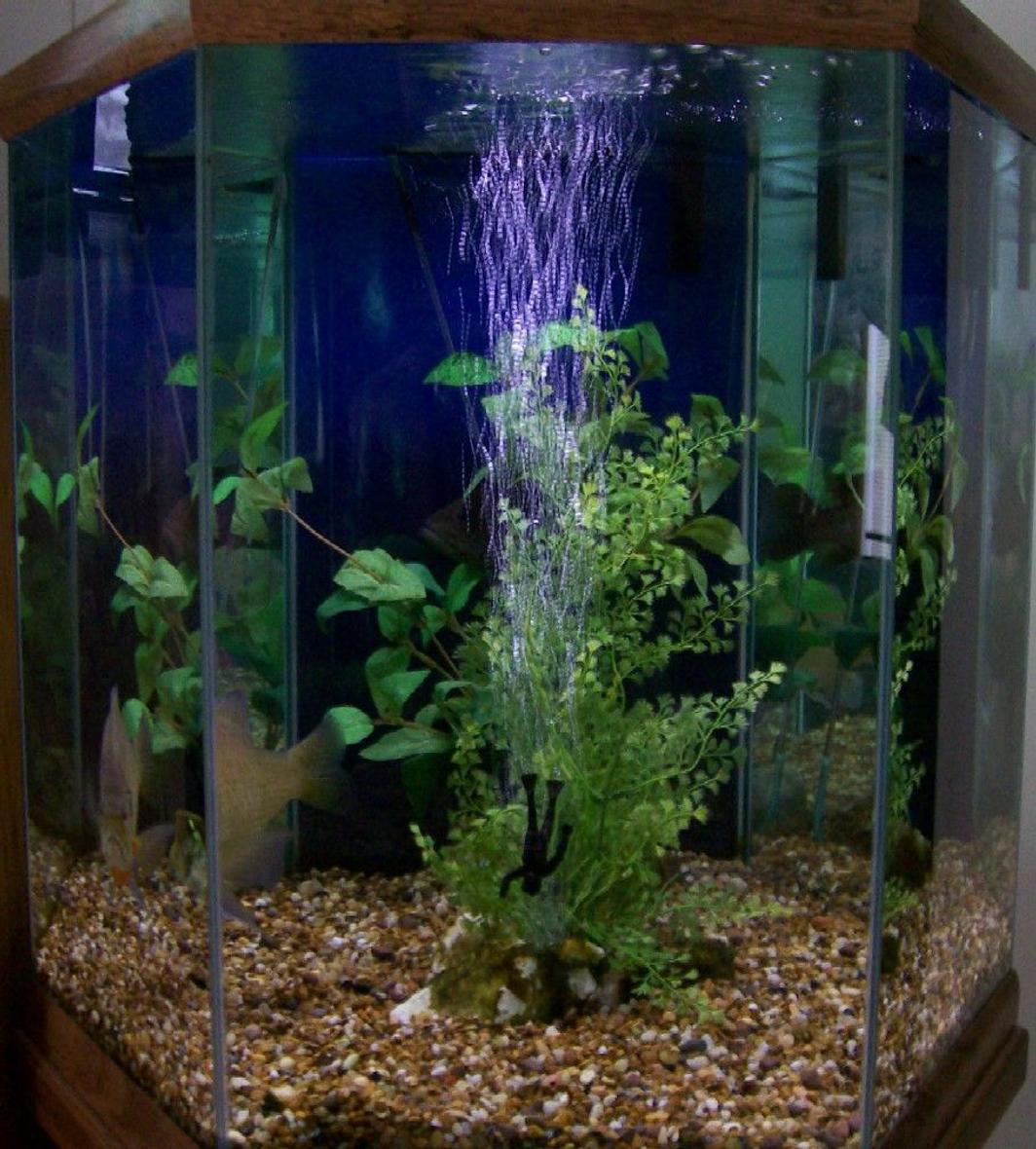 40 gallon Hexagonal tank, 18" fluorescent light, Penquin Bio-Wheel 200 filter.