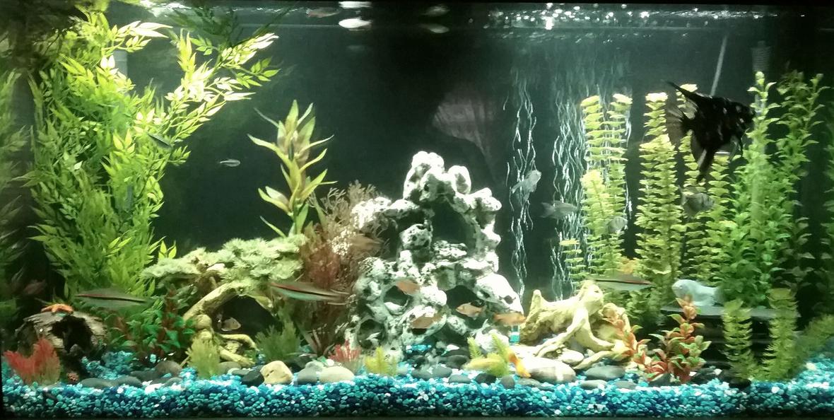 Marble Veil Angel, Denison Barb, Blue Gourami, Gold Gourami, Black Skirt Tetra, Bloodfin Tetra, Cherry Barb, Black Neon Tetra, Peppered Cory Cat, Platinum Lyretail Molly, Platy, Red Minor Serpae Tetra