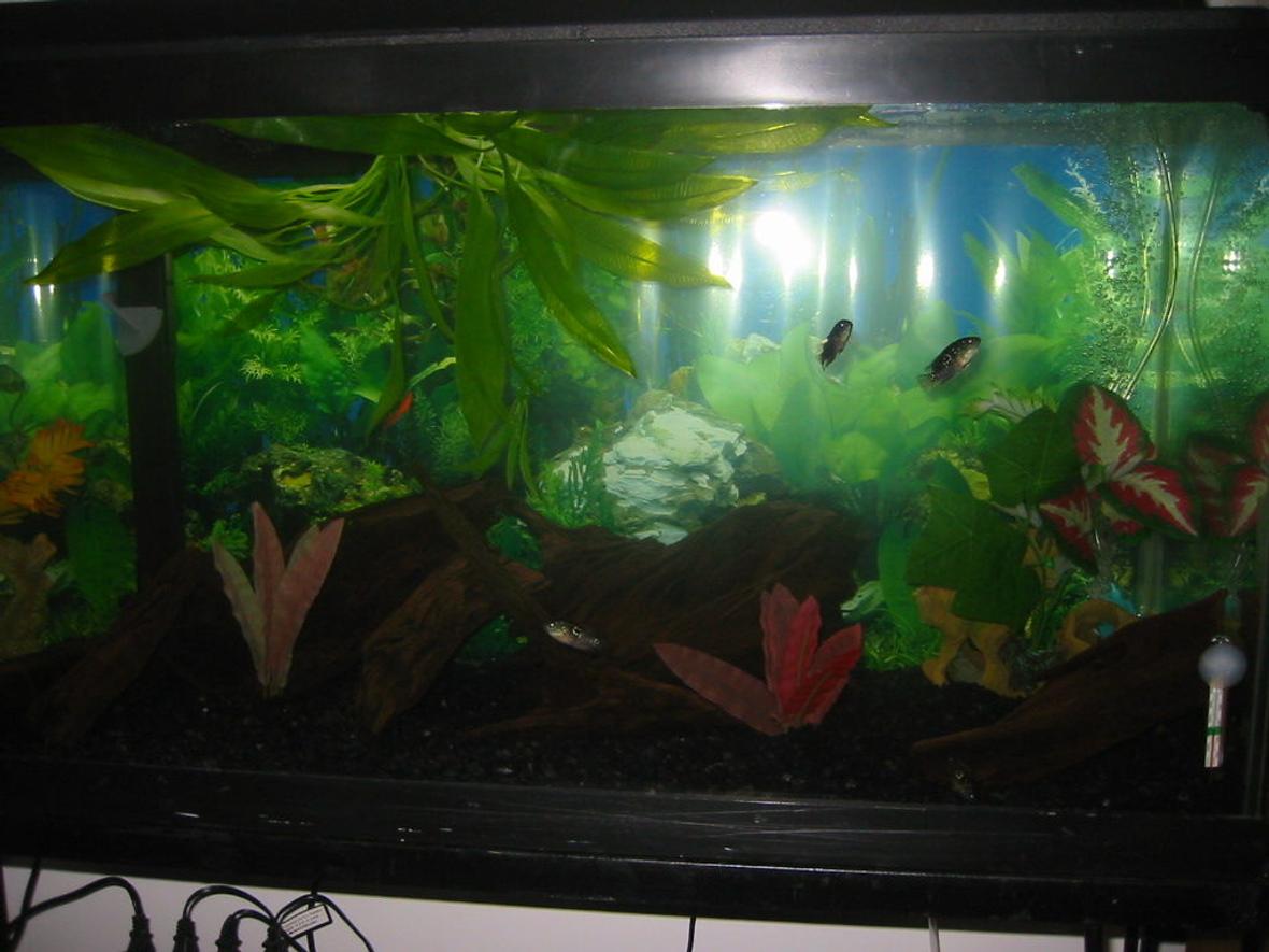 36x12x16, black iron stand, marine eclipse filter for 55 gallon, air stone, regular flourescent light