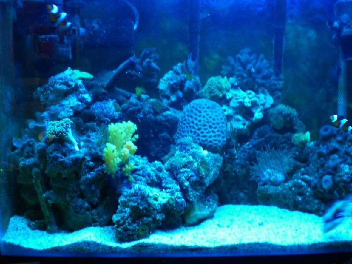 All-glass Aquarium: 20 gallon tank, 24'l-12''w-18''h, with 1 65w duel actninc, and 1 65w duel daylight compact flourecsent light. Also has two Aqua Clear Powerheads, SeaClone protein skimmer, two power filters, heater, and digital therometer.