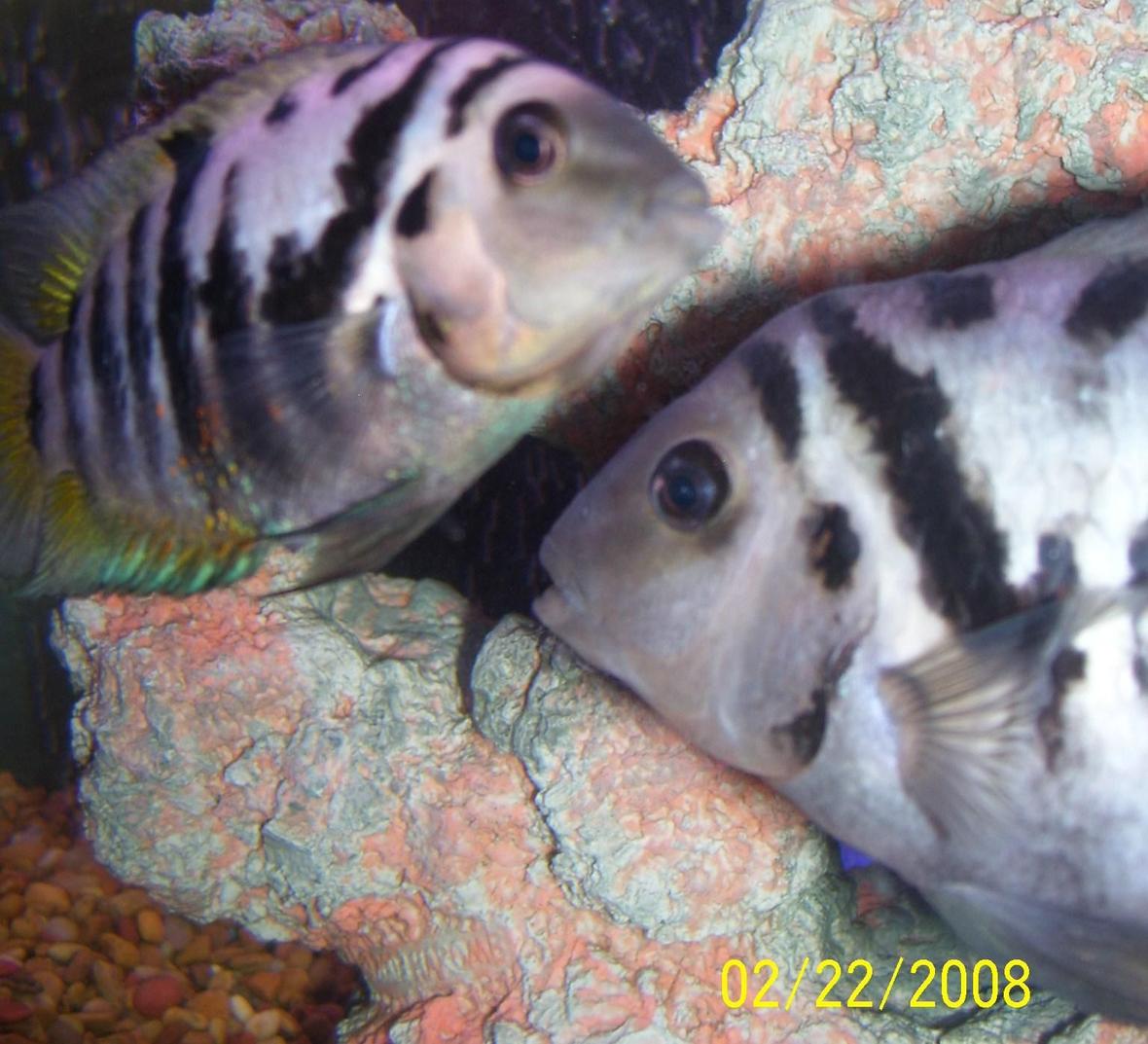 9 convicts,not all in one tank, ma and pa in my 14 gallon! 4 in my 10 gallon, 3 females and a male i believe. My pride and joy, my 55 gallon, i have a mix ,3 convicts 1 pink , 2 with bars 3 yellow labs, 1 johanni "? spelling" and a few i will be asking for help to I.D them ........2 Danio's