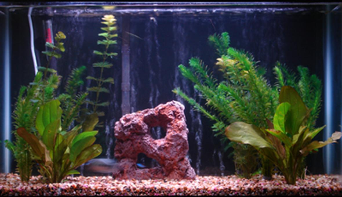 small 29 gal. top fin starter tank with a 20w power glo light and wall of bubbles in the back