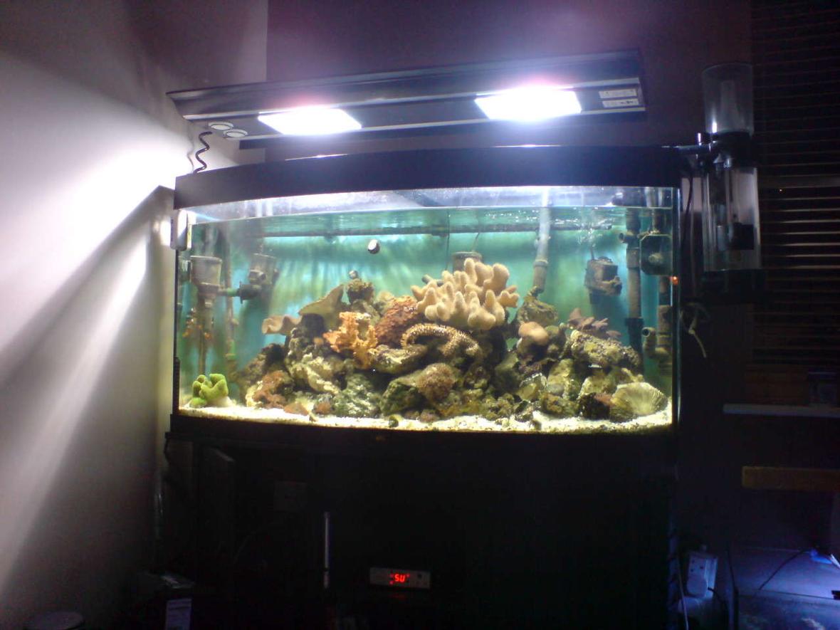 I have a 4 fot 260 ltr tank 120cm series 3 halogen lights with the blue uv atnic lights, I have 2 external filters skimmer i also have a wave machine, uv light and a computer to work everything i have aprox 80kg of live rock with a number of soft corals.