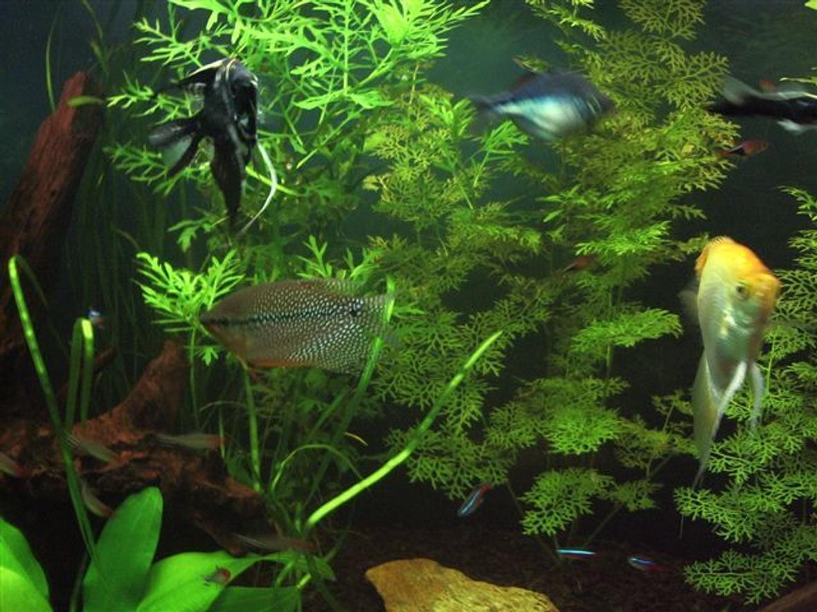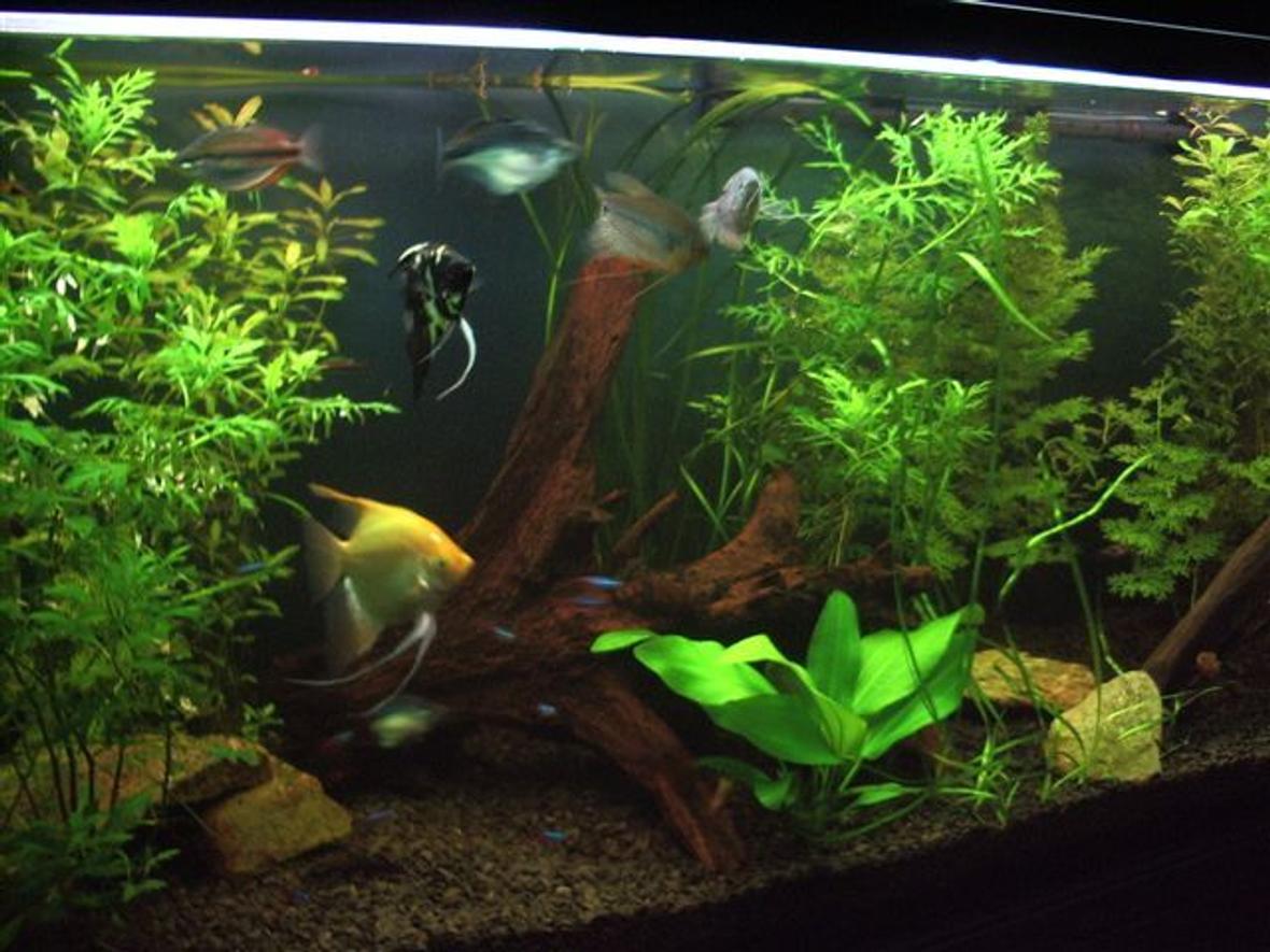 This planted tank is about 6 months old, but some of the fish are about 3 years old after having been transferred from another of our tanks.