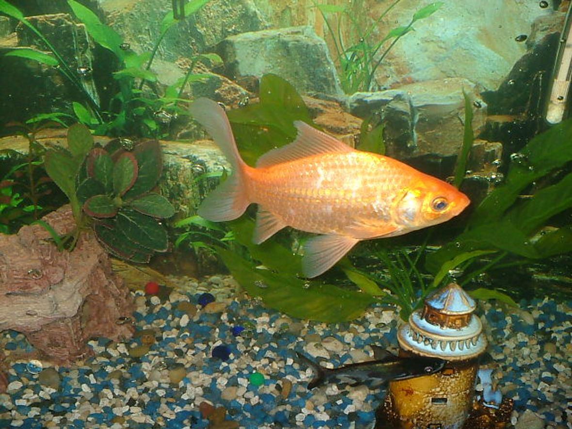 one feeder gold fish(had him since he was an inch now hes HUGE!