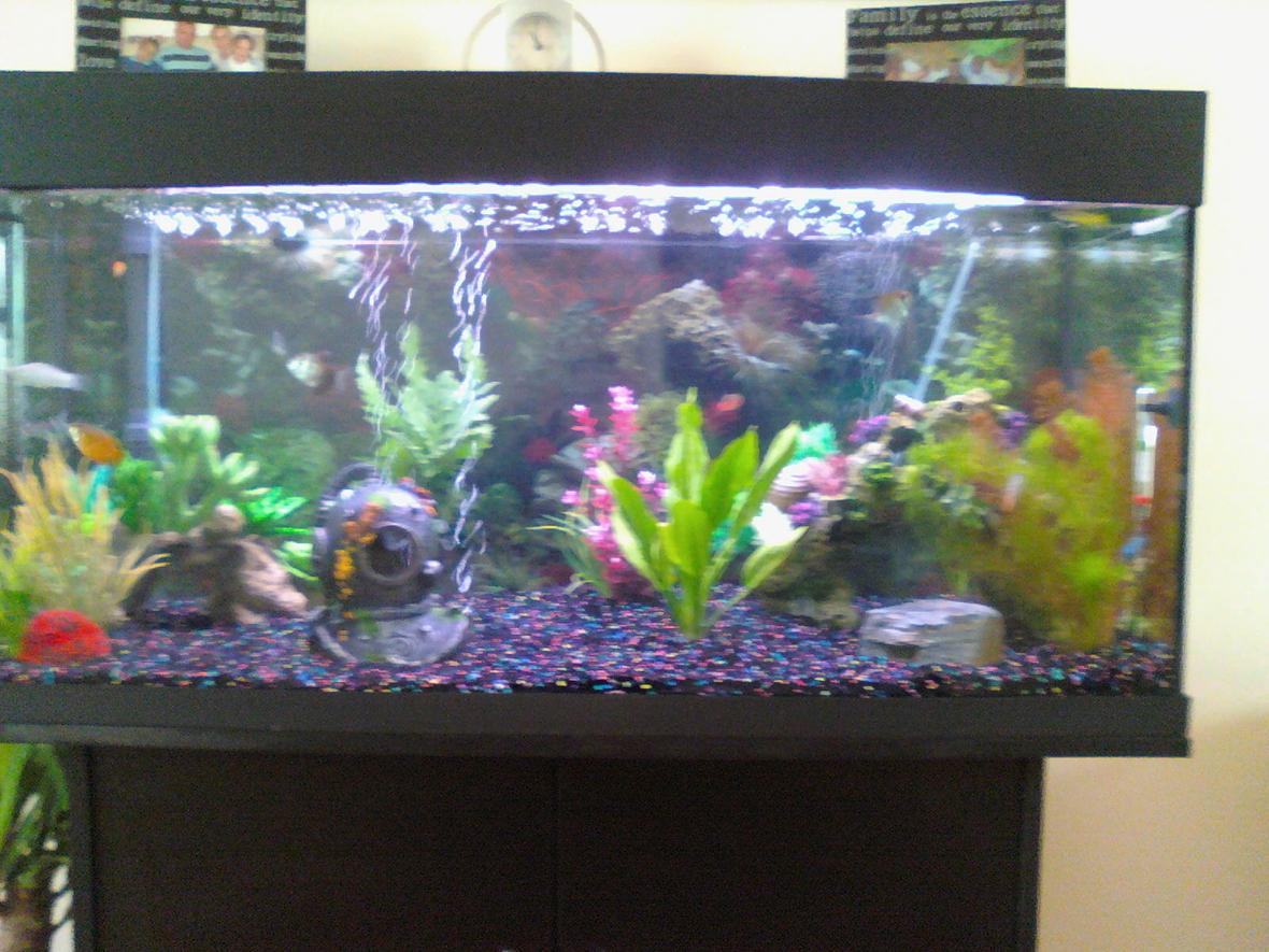 10 mubuna malawi cichlids and one syno cookuo cat fish they are all small in size i will be looking for a bigger tank in the future