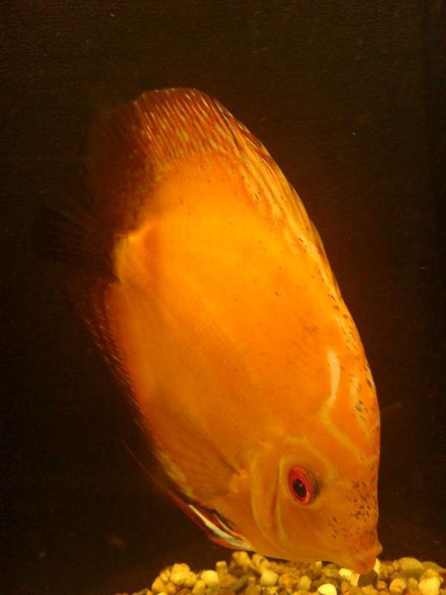 Give a discus lots of place (minimum 11 gallon for a grown up fish.
