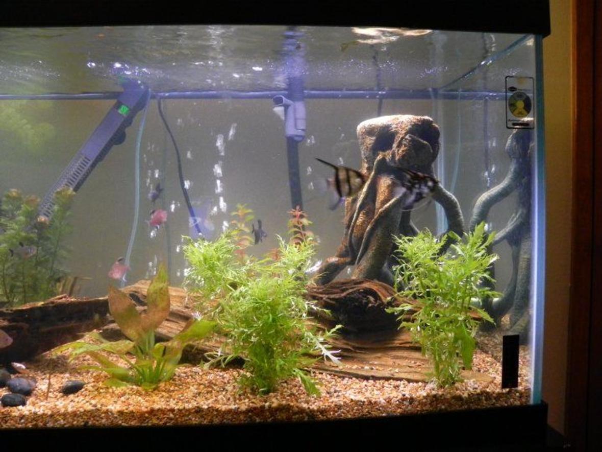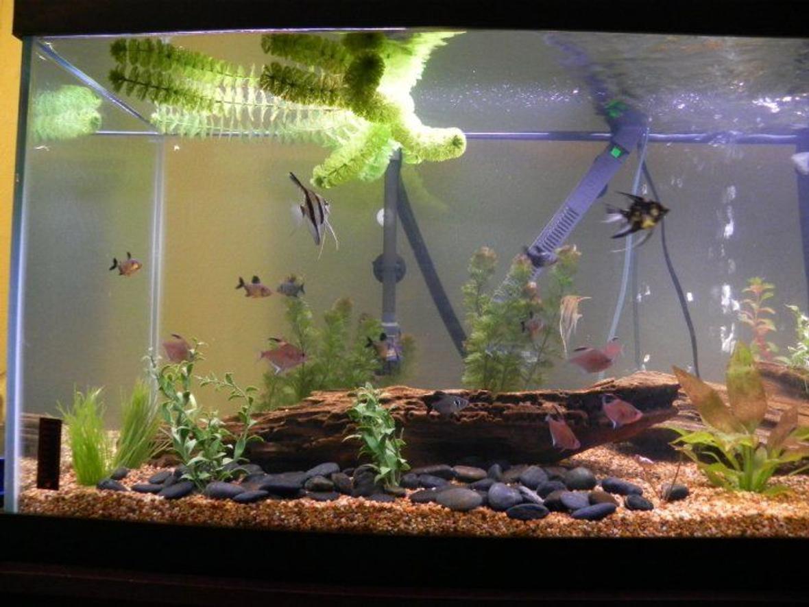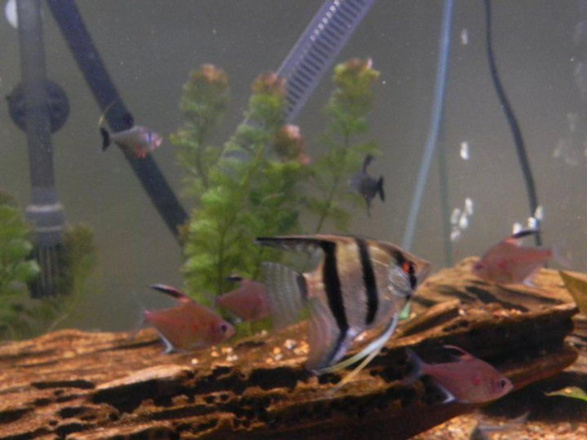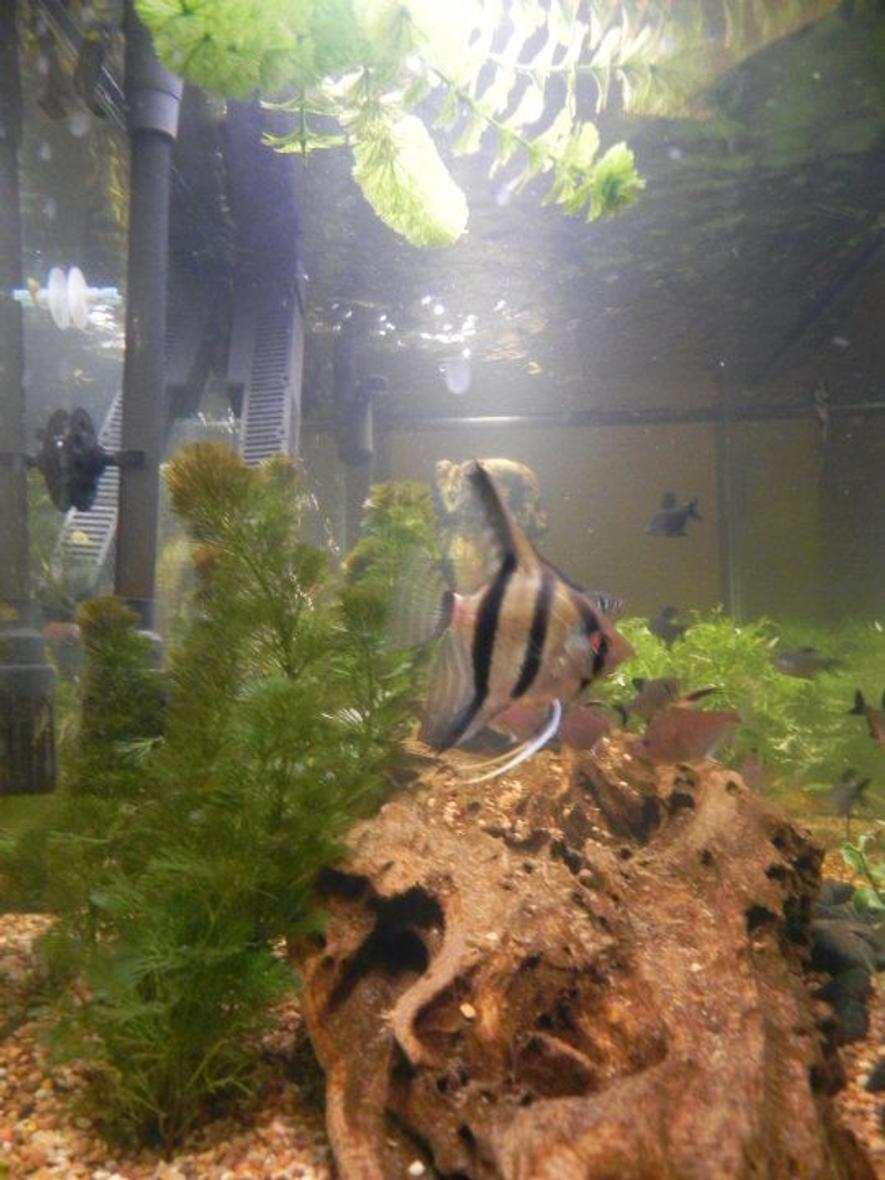 The 75 gallon aquarium is stocked with fish naturally occuring in South America (mostly in Amozonian basin biotope, meaning Brazil, Bolivia, Peru, Paraguay) Those being 3 Angelfish, 7 Bleeding Heart Tetras, 10 Black Phantom Tetras, 3 Pictus Catfish, 2 Hi Fin Plecostumus, between 5-15 Ghost Shrimp (for cleaning the substrate and to be food for the ... See MorePictus, yes I replemish them weekly as needed), and 2-3 baby snails which are cleaners also. I do not keep the tank in the natural Amazonian Blackwater state with Amazon Blackwater extract or filter addatives currently it is hard-ass NOLA tapwater.