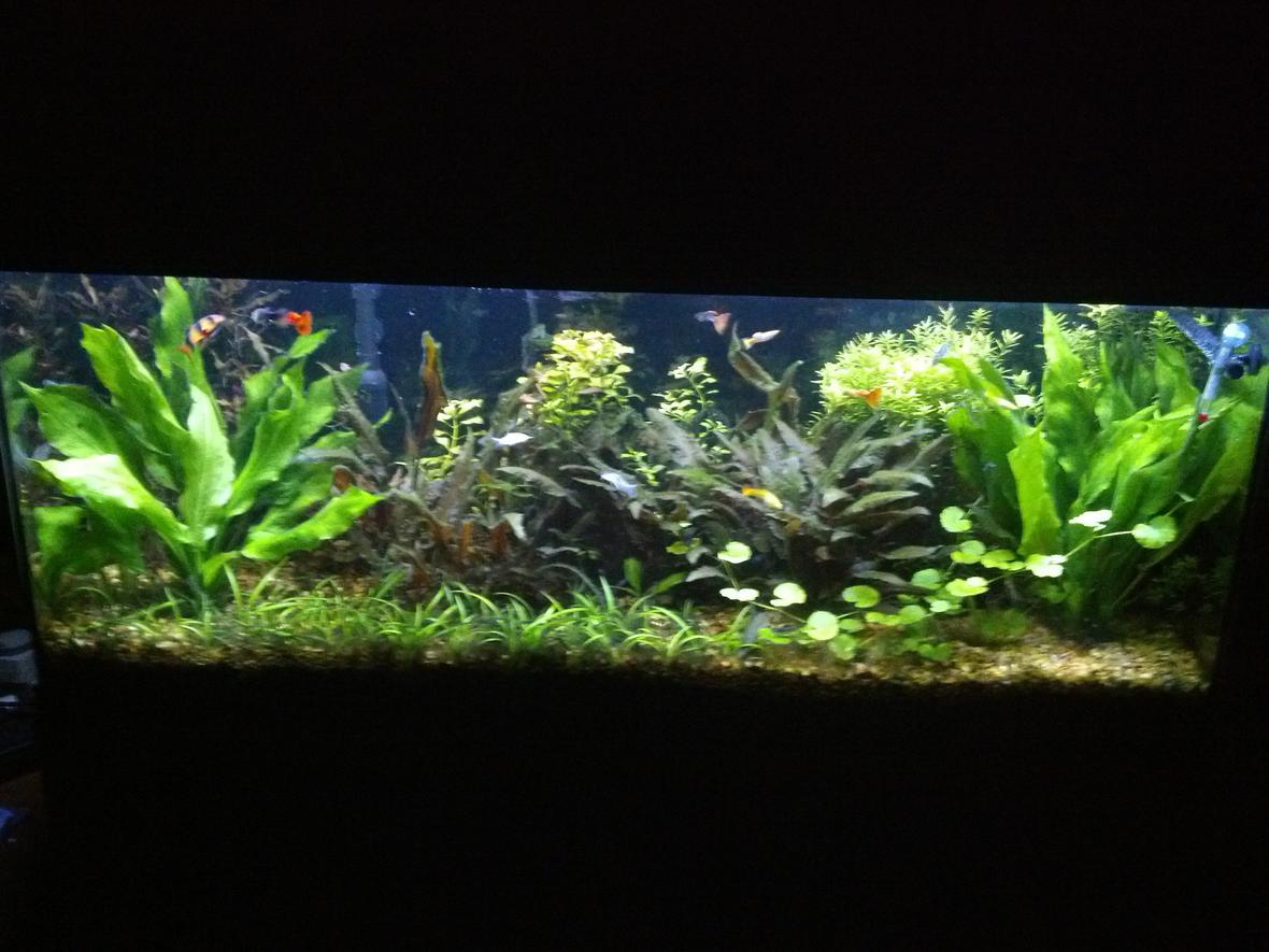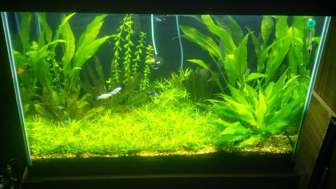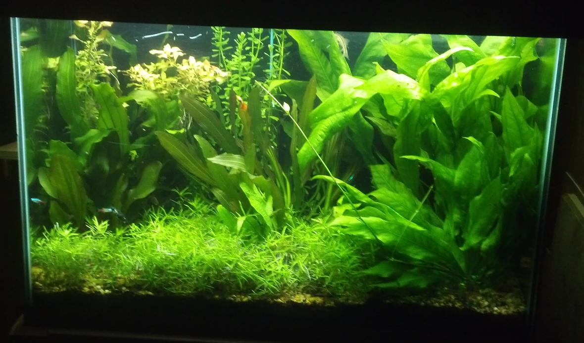 Star Grass, Amazon large and small, bacopa, Kleiner Barb Sword, Money Wort, Moss Balls, Red Rubin, Ocelot, Four leaf clover, Ludwigia Repen, Cryptocoryne wendtii, Wisteria and Rotela Indica