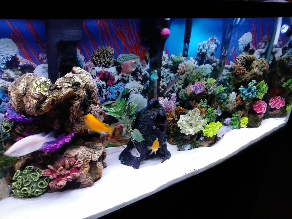 Well kinda funny how and why I decided to do a tank. Every one I know that have tanks are just well not attractive some dirty and excuses of why are endless so I started reading on keeping tanks clean and stunning i wanted it to pop in beauty when folks walked in and seen my tank and for the to just stare into it. So I decided to challenge it and these pics are my results.