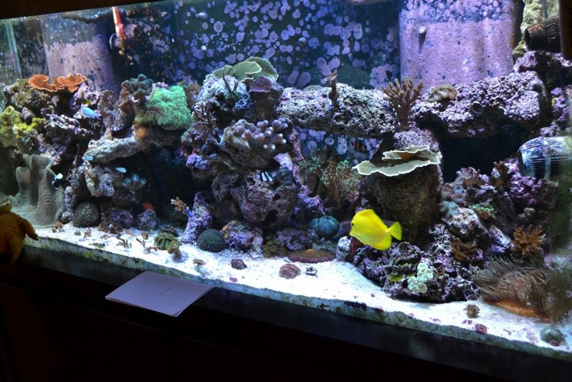 tank 1- 210 reef tank, sps and lps with reef octopus skimmer and calcium reactor, 4 evolution 1400 power heads, aquascaped with rock and pvc.