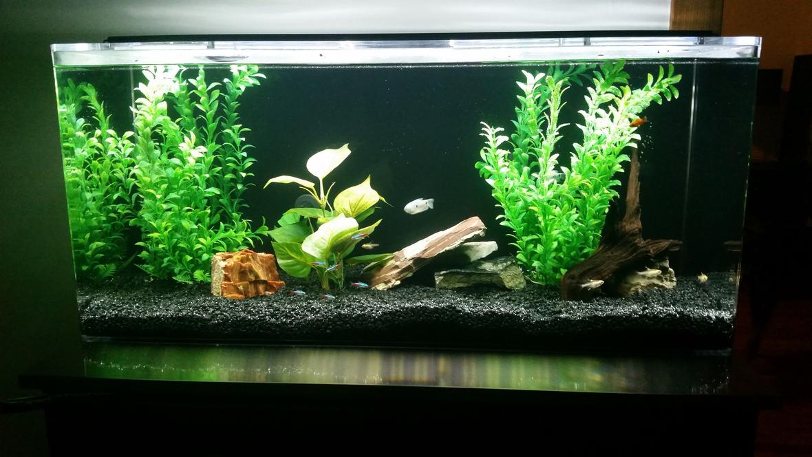 35g long, acrylic. Eheim Classic 2213 canister, 220w hydor inline heater.