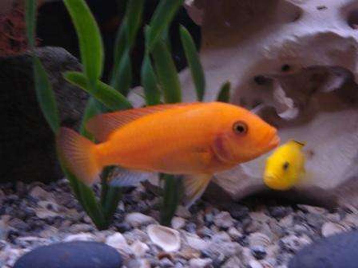 18 cichlids and 2 sharks: 6 Electric Blue Ahli (3 males & 3 females), 5 Red Zebra, 4 Yellow Labs (2 males & 2 females), 2 Mangano, 1 Demasoni and 2 Red Tail Sharks. Any suggestions for additional fish that mix well with African Cichlids?