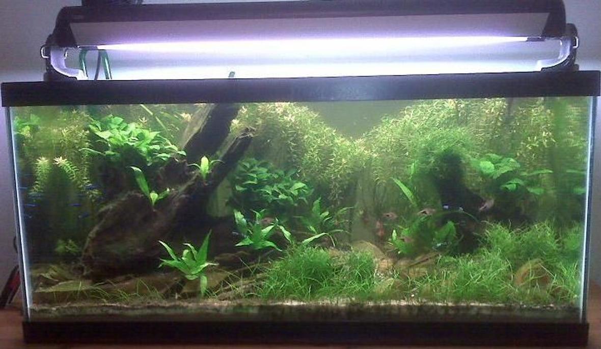 Had a 10 gal as a kid. Recently decided to try it again -- loved the idea of small natural looking aquascape. Here's my attempt. Spent more money than I originally would have liked, but very pleased w/ the set up (all things considered) and love to sit and watch.