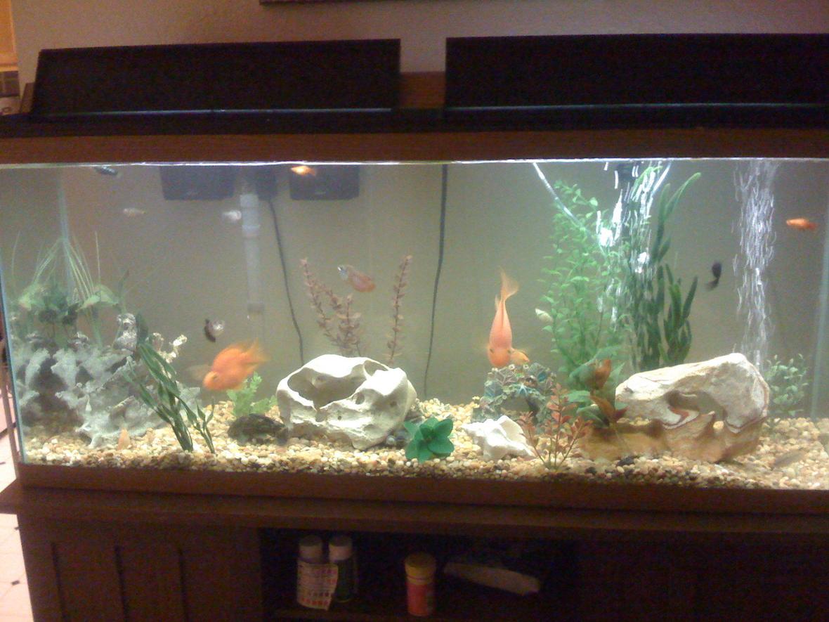 Parrot fish, Neons, Clown loaches, Yoyo loaches, Rainbow Sharks, Mollies, Platies, plecos, plecos and plecos, mystery snails, crawfish, Dragon Goby, Albino Tiger Barbs, Dwarf Gouramis, so many more. I will have to take inventory . Oh, I know I have a few fish that I need help telling what they are. They were rejects because they had their fins eaten. So the store let me have them, but I don't know what they are.