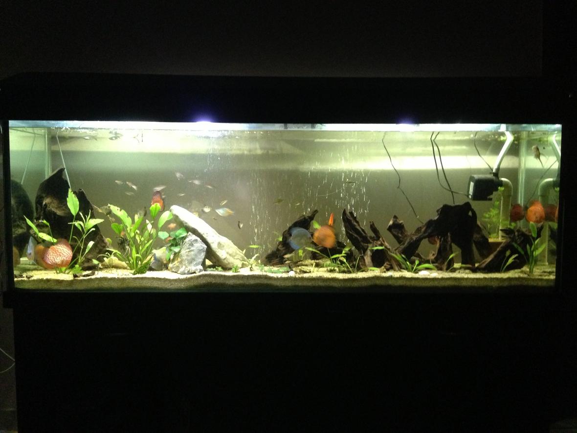 the size of the tank is 6 x 2 x 2, roughly 130 gallons, with live plant and freshwater fish, i am using home made undergravel filter and a dolphin external filter, 4x20 watt led lights, and finally a 300 wt heater.