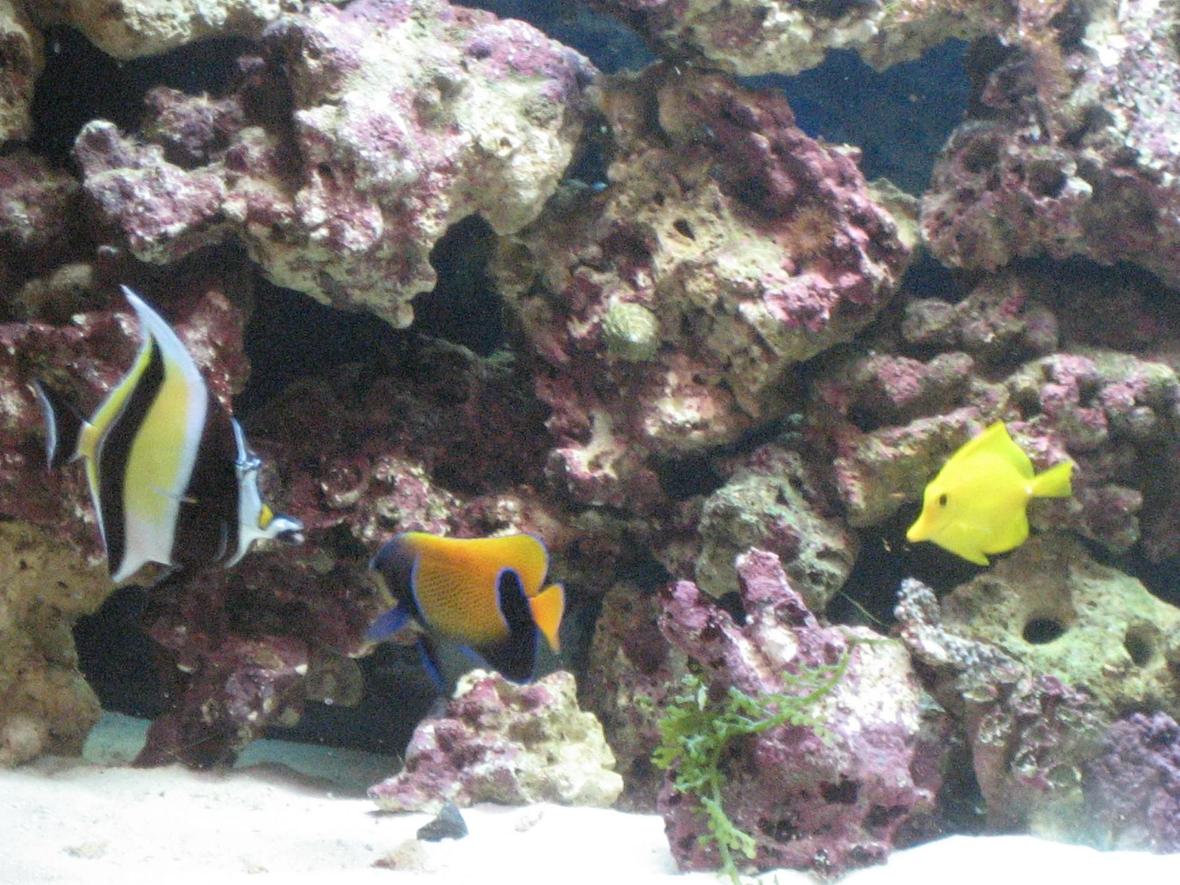 majestic angelfish,lion fish,2 yellow tang,blue tang,clown fish,clams,