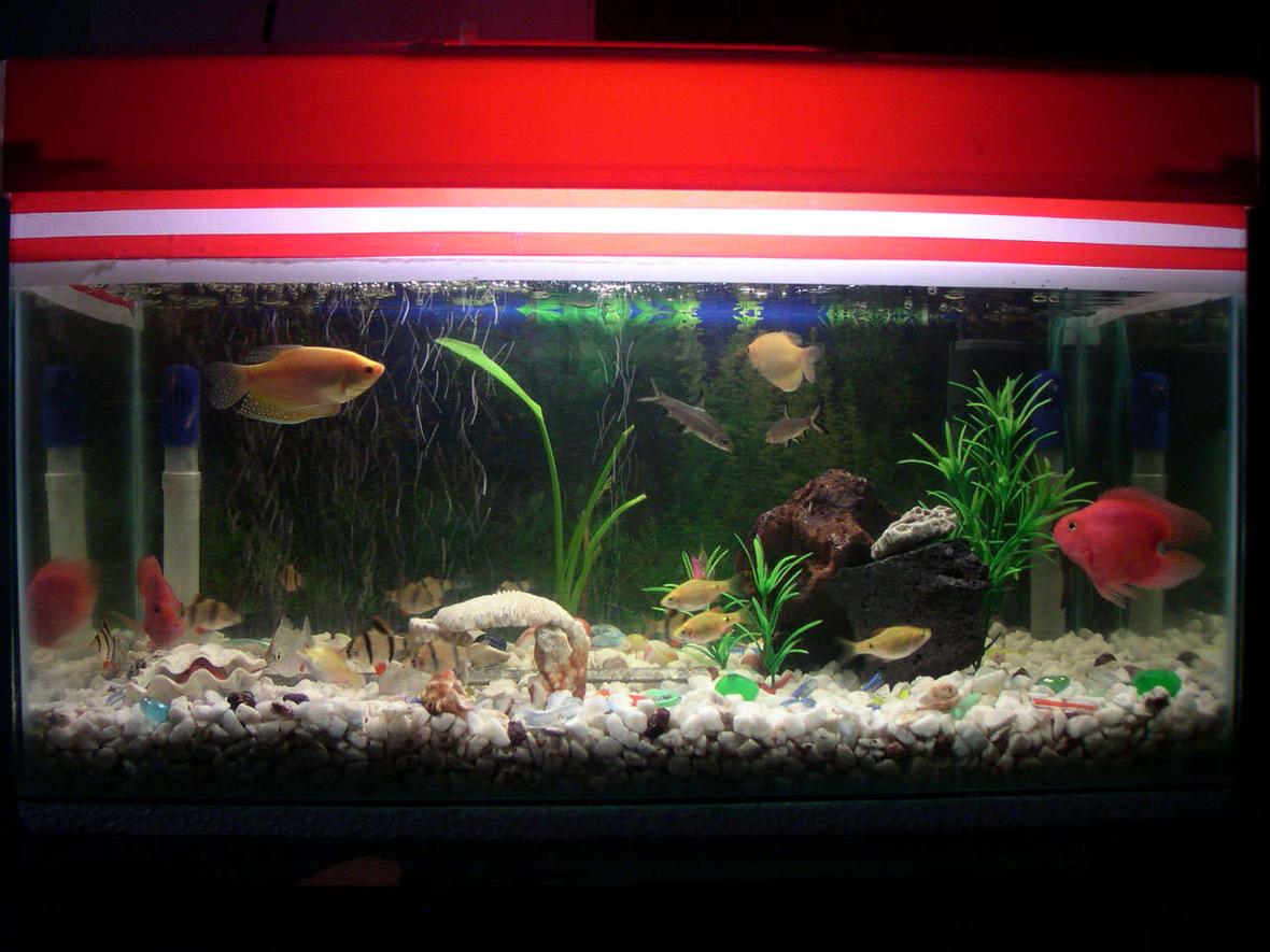 this is my 67 gallon tank. measures 36" by 18" by 24". i have a mix of cichlids and a breeding pair of blood red parrots. i have 5 frys from the blood parrots.