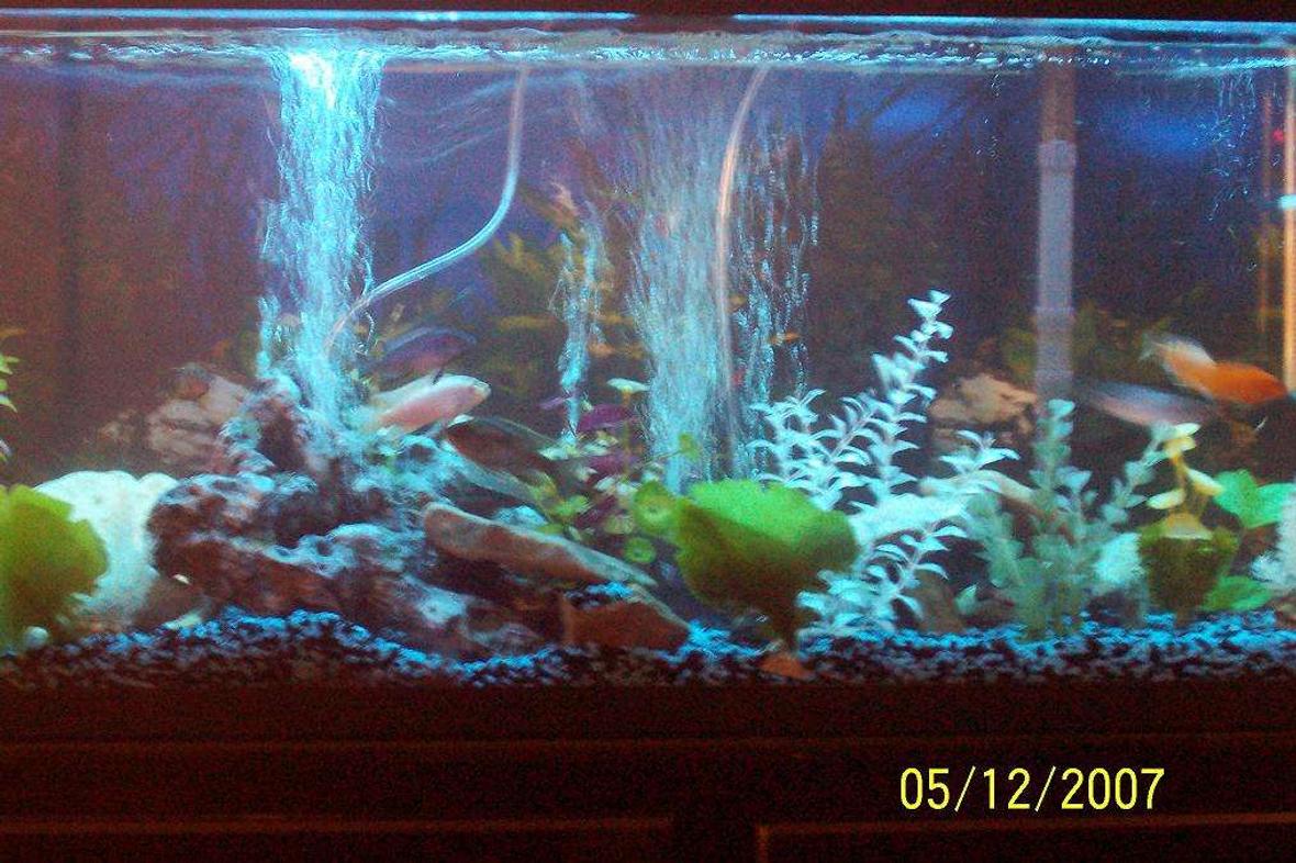 55 gal., black light, assorted cichlids. wld like info of my fish if anyone can tell. im sort of a novice