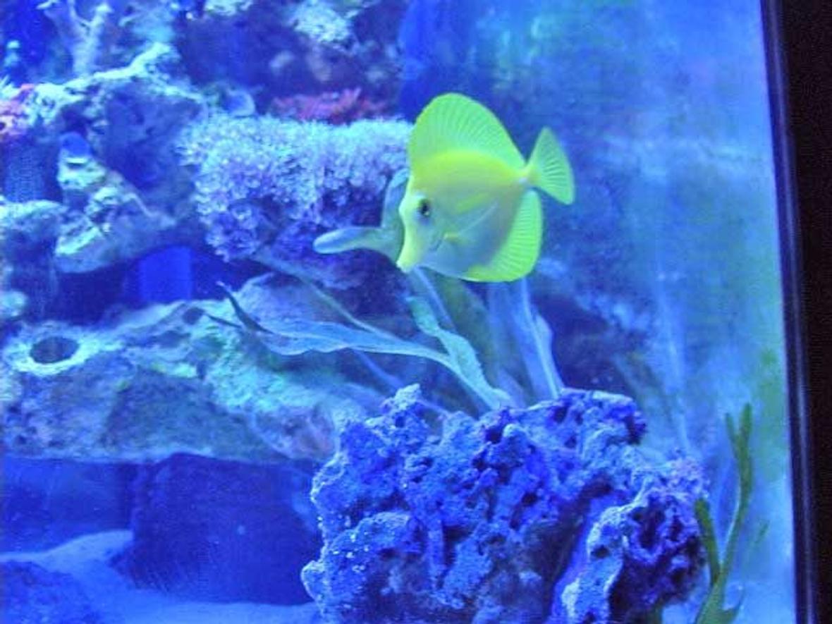 Yellow Tang, Diamond Goby, Lawnmower Blenny, Pair of percs