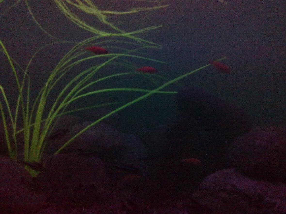 It is just an ordinary Freshwater tank.. with rock settings... i have added an Blue Marine light and a Black light for Ornamental purpose !! using an SHANDA powerhead ! normal under gravel filtration