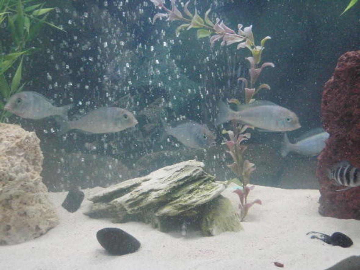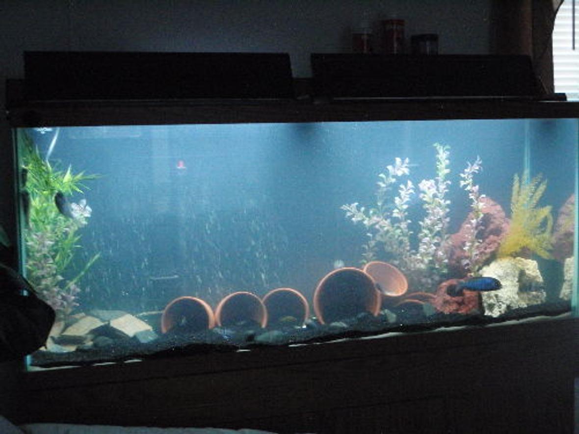 The second tank is all the same except for natural colored gravel(different shades of brown) and two coralife 18"50/50 with a six led moonlight kit. and this tank houses my wife blood parrots.