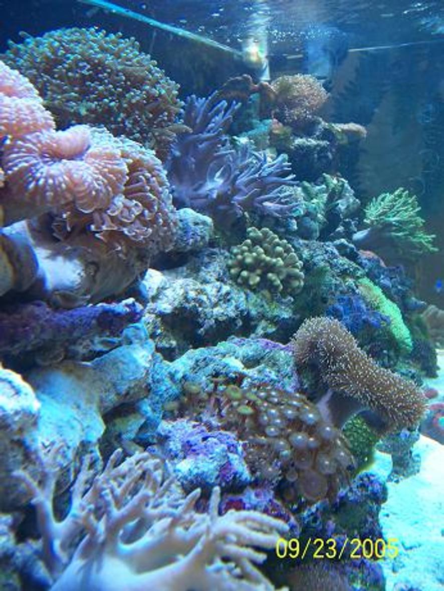100 gal w/2 175 watt metal halides berlin system,euro-reef protein skimmer,calcium reactor as far as corals go sps,lps,soft ect....fish:6 line wrase,blue damsel and ?my wife likes pretty fish so i had to put some in for her other wise there would be none!