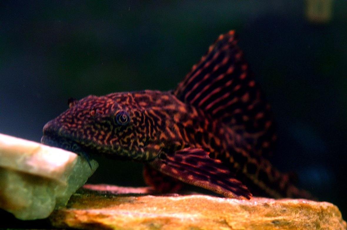 In the big tank: Nathan Explosion (Common Pleco), William Murderface (Tiger Oscar), Toki Wartooth (Albino Sailfin Pleco), and Roberta (Common Goldfish)