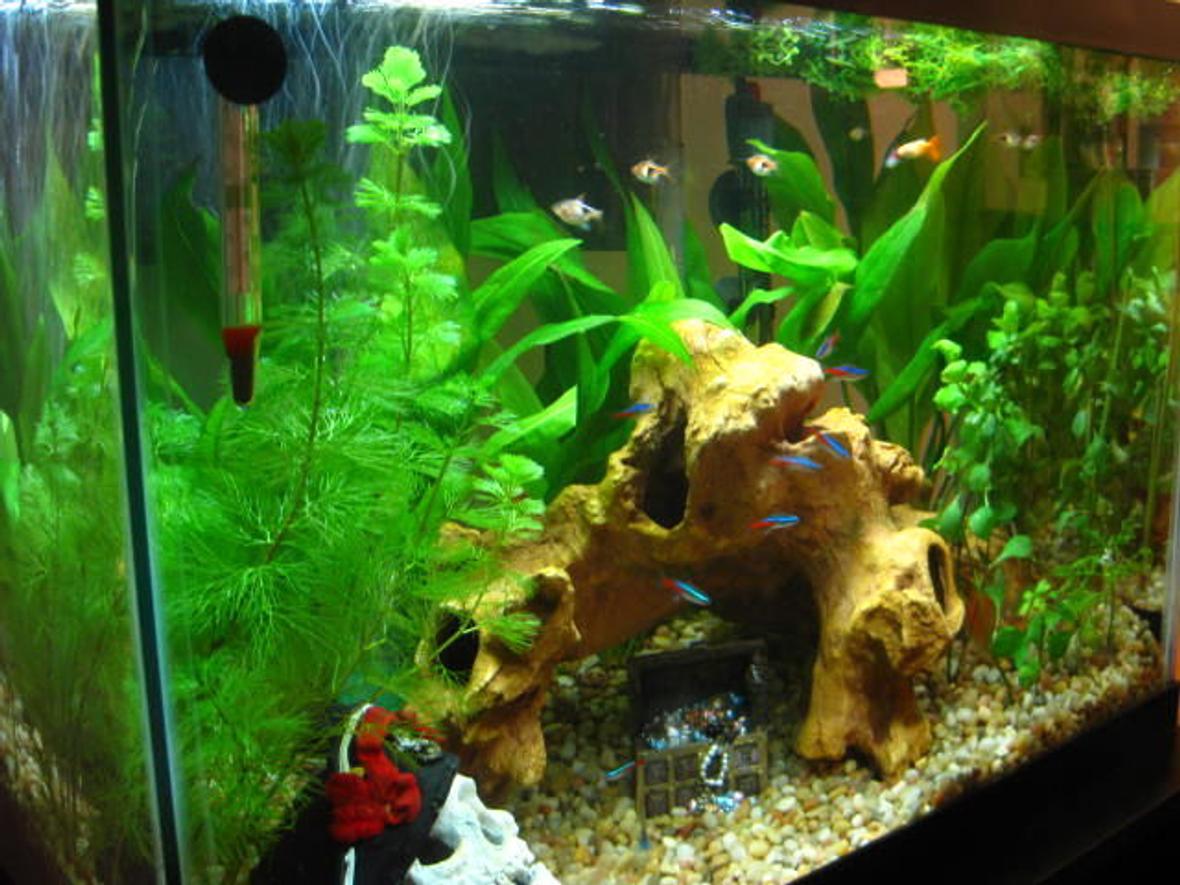 7) Algae is for the birds unless you have algae eating fish. Subdue the lighting with strips of cheap packing tape on the hood glass under the lamp and keep the tank away from direct sunlight.