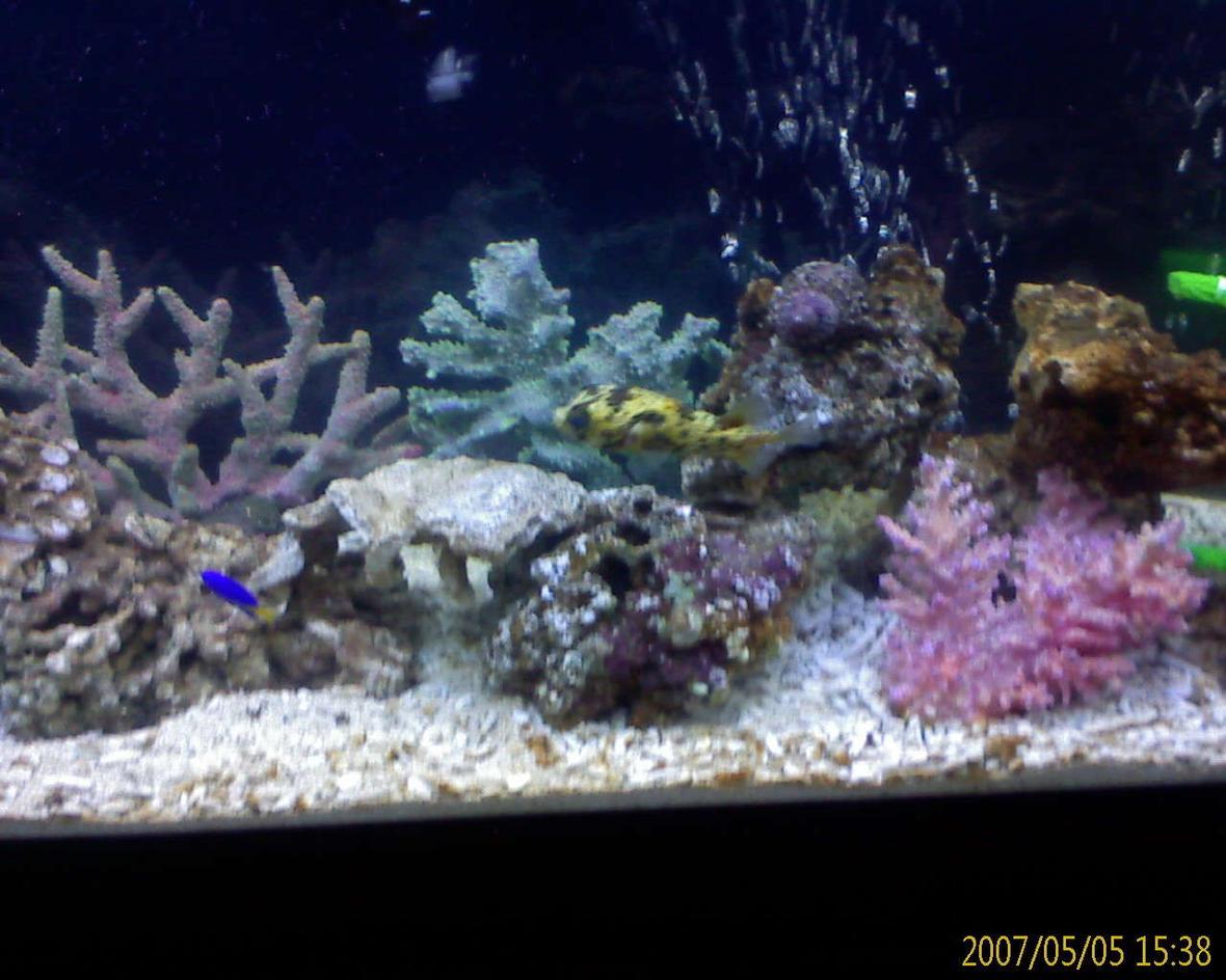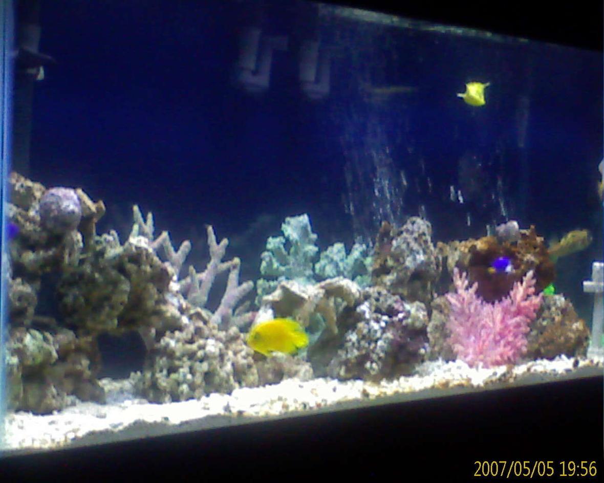55 Gallon Fish only tank w/ 2 fluval 305's a prizm protein skimmer 9watt tetra uv sterilizer 50 lbs of live rock and 50 lbs of coral a cow fish, koran angel, turbo snails, and some damsels, let me know what you think about my set up o and lets not forget all my corals (dead)