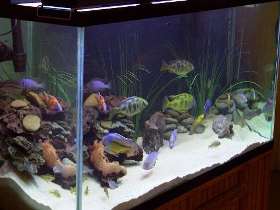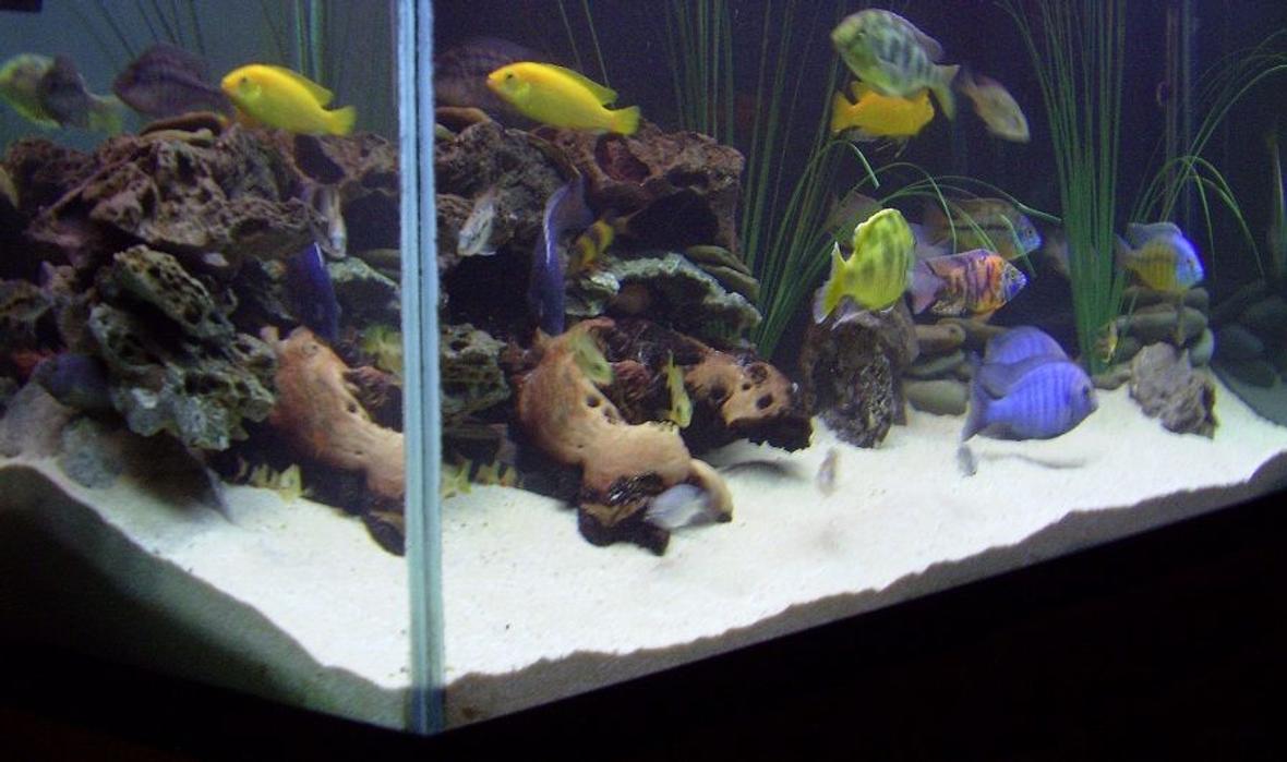Substrate: African Cichlid sand and play sand mixed. (Approximately 200 pounds total)