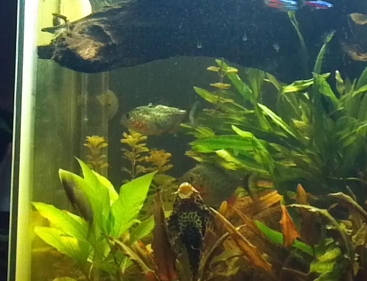 Red belly piranhas. Sailfin pleco. Once in a while theres some goldfish but they disappear in like a few minutes.