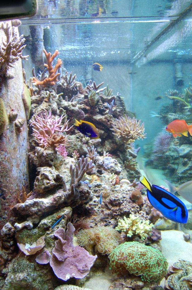 I started as a cichlid hobbyist, turned breeder. After breeding 50 or so species of cichlids I tore down my 30 tank/1000+ gallon fish room, and built my dream in-wall reef tank in the summer of '07. I now spend hours at a time pressed against the glass of my reef.