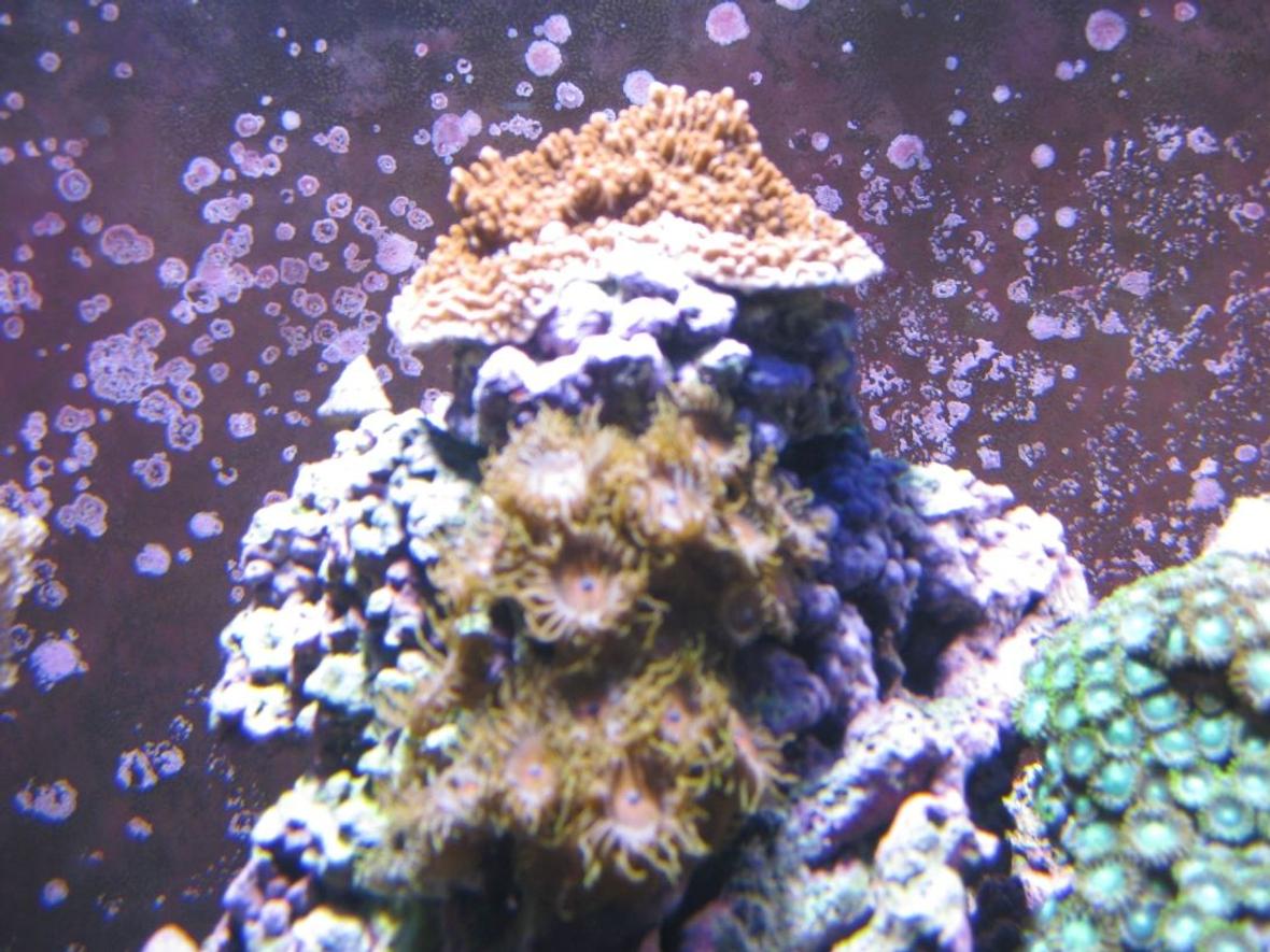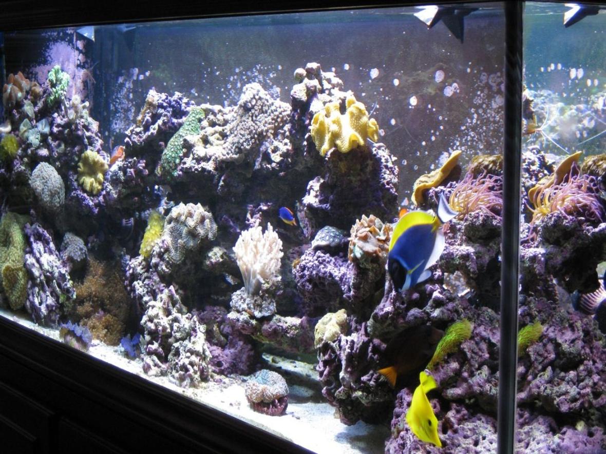 120g Reef Tank, (approx. 5'x2'x2') 180 lbs L.R., 80lbs Crushed Coral sand, 2x250MH, 2x96w Actinc, 4 LED moon light, Turbo Float Skimmer, 30 G wet/dry Sump with 10lbs L.R., 17g Refugium with Chaeto, L.R., 4 inch deep sand bed, 1200gph main pump, additional 4 P.H. in tank @ a total of 3000gph, internal dual overflows.