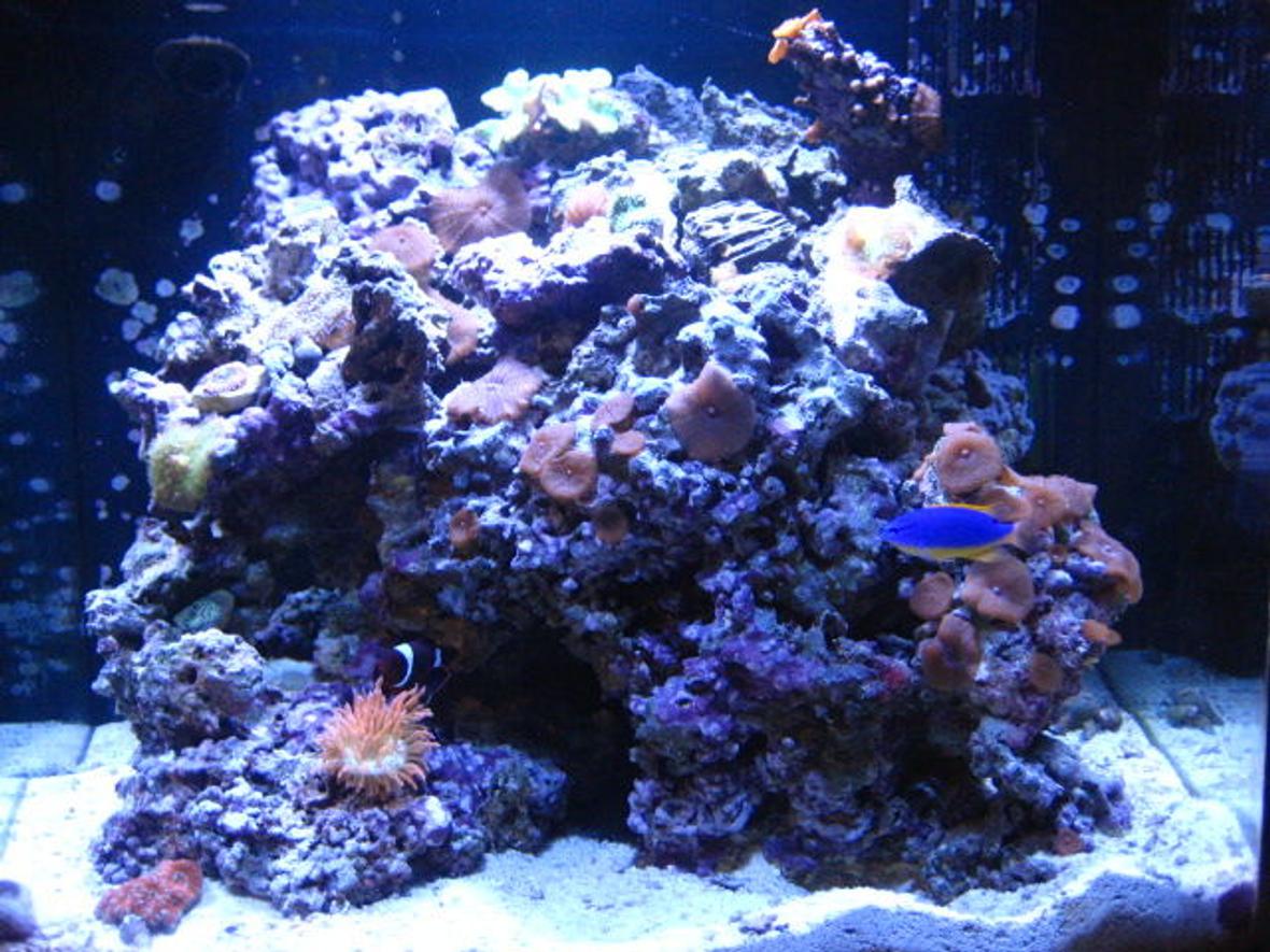 Saltwater tank i only have 2 fish a maroon clown and a fiji damsel, i also have a indica starfish, a skunk shrimp thats been round 4 years now, sea urchin and some hermit crabs.In the freshwater tank i have 2 cory, 2 siamese algae eaters, 2 otto cats, 6 celestial pearls, and 6 white clouds.