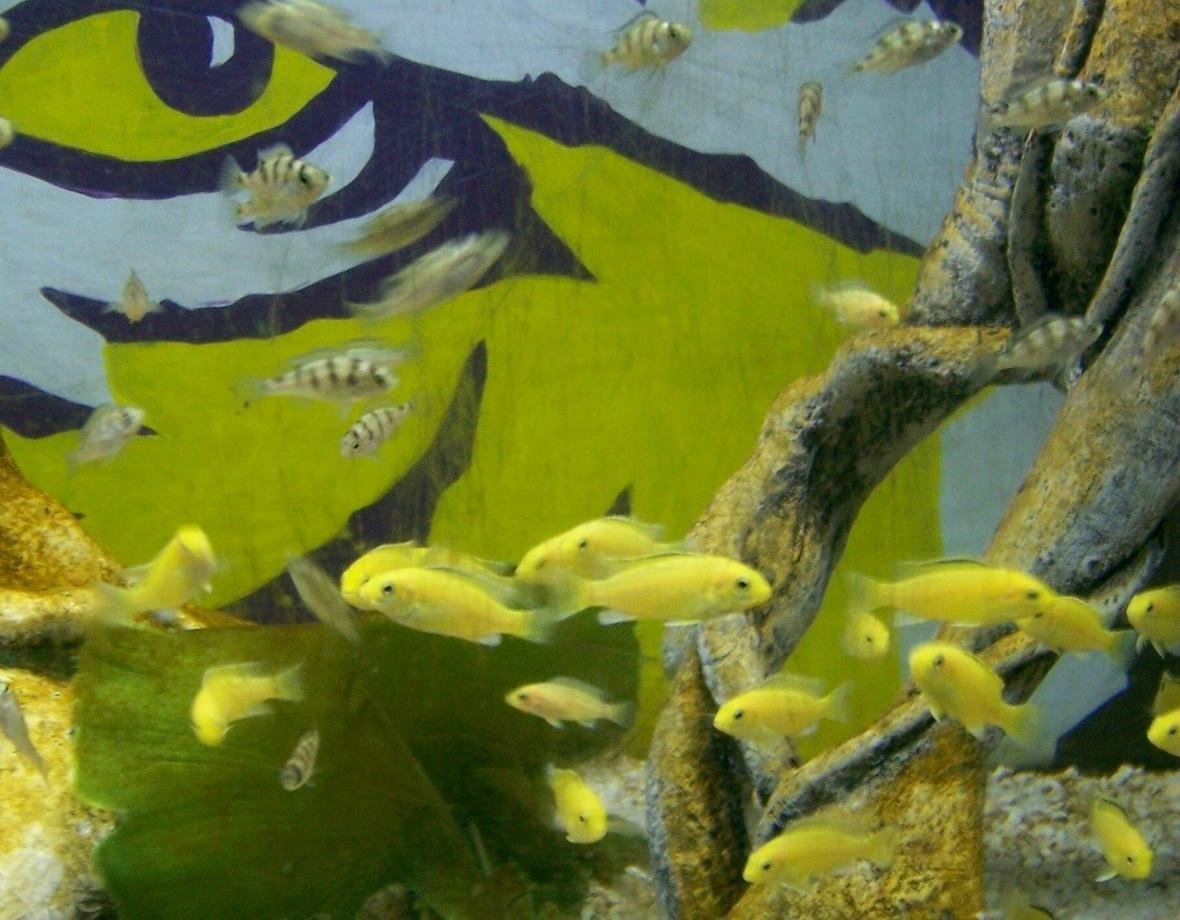 55 GAL:1 Blackbelt cichlid, 1 Johanni cichlid, 1 venustus, 2 Acei, 2 frontosas, 2 obliquidens (breeding pair), 3 electric yellows(breeding pair + 1 male), and 2 fish i'm not sure of. 30 GAL: 2 green spotted puffers, 1 african leaf fish, and 1 tire track eel. 40 GAL: lots of our cichlid's babies...our cichlids in the 55 gal breed a lot