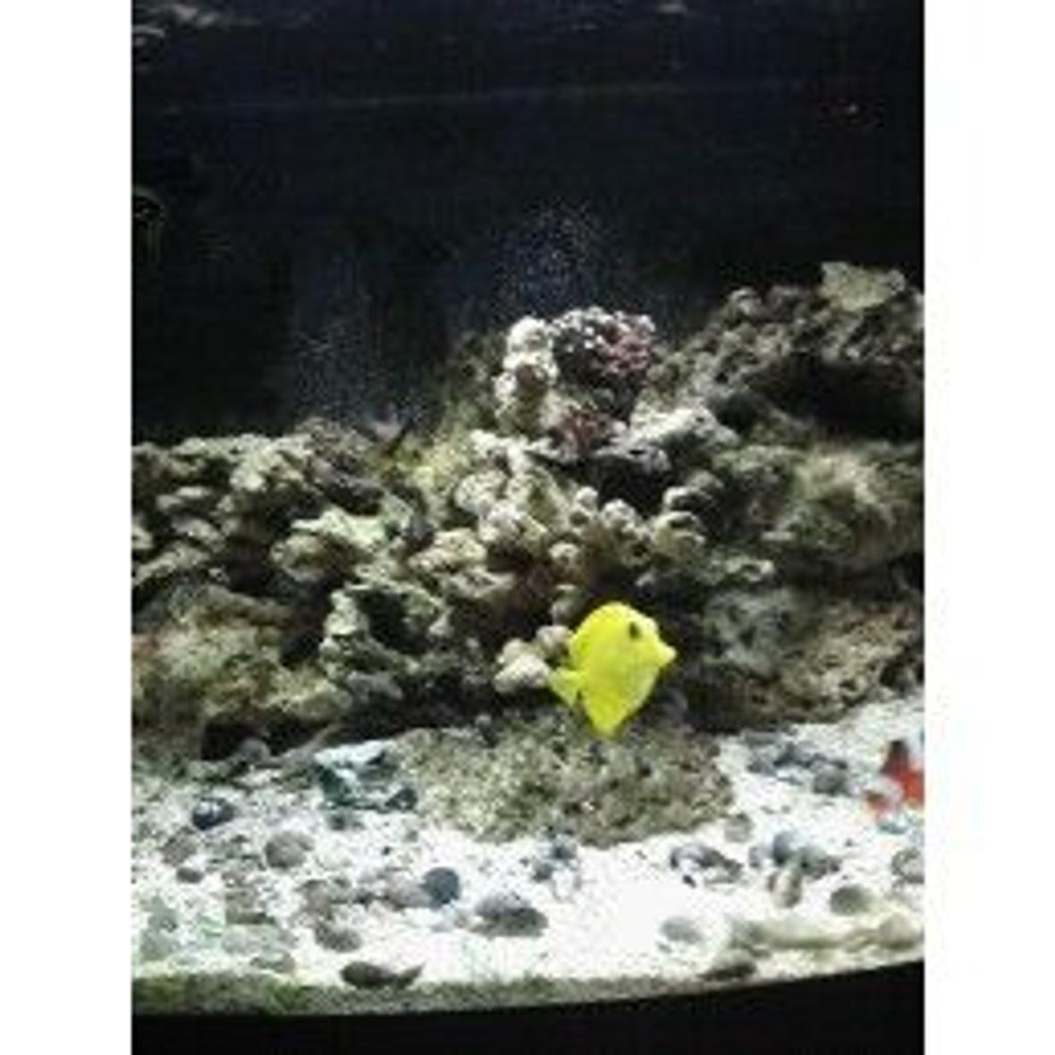29 gallon biocube, 1 yellow tang, 1 six line wrasse, 1 peppermint shrimp, hippocampus erectus seahorse, hippocampus kuda seahorse