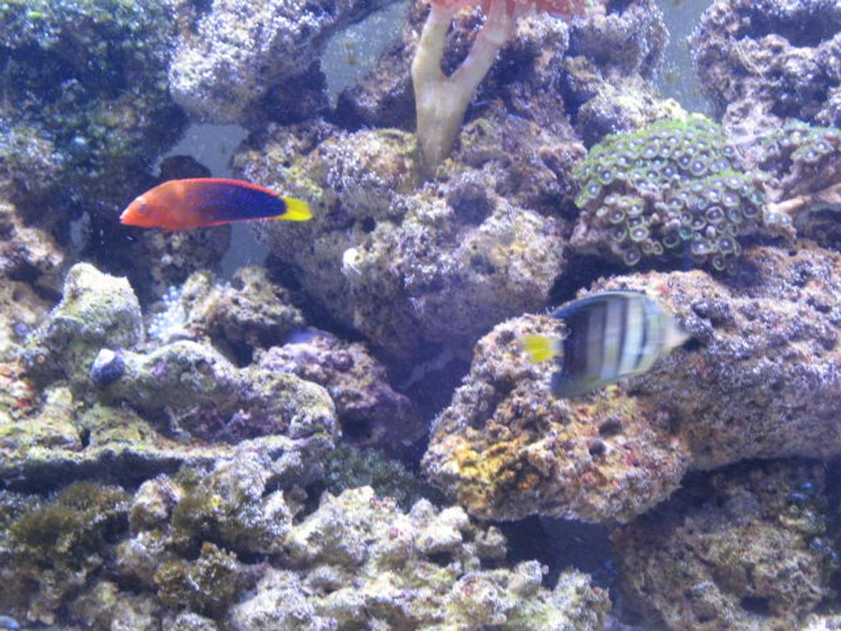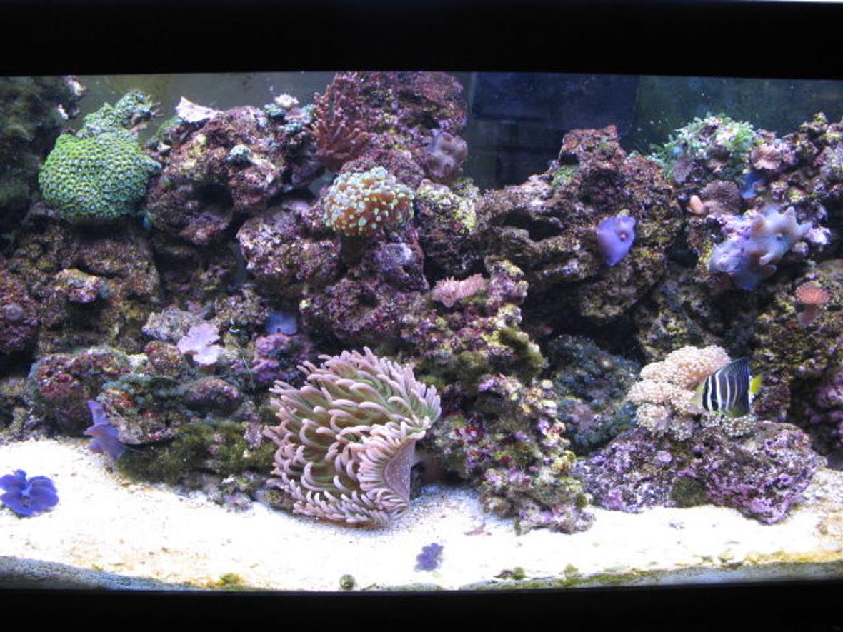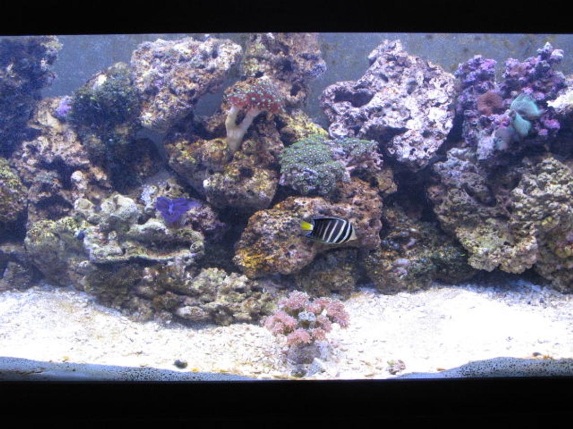 100 p of live rock 8 T5 mix blue and daylight ramora hang on proten skimer lots of water changes
