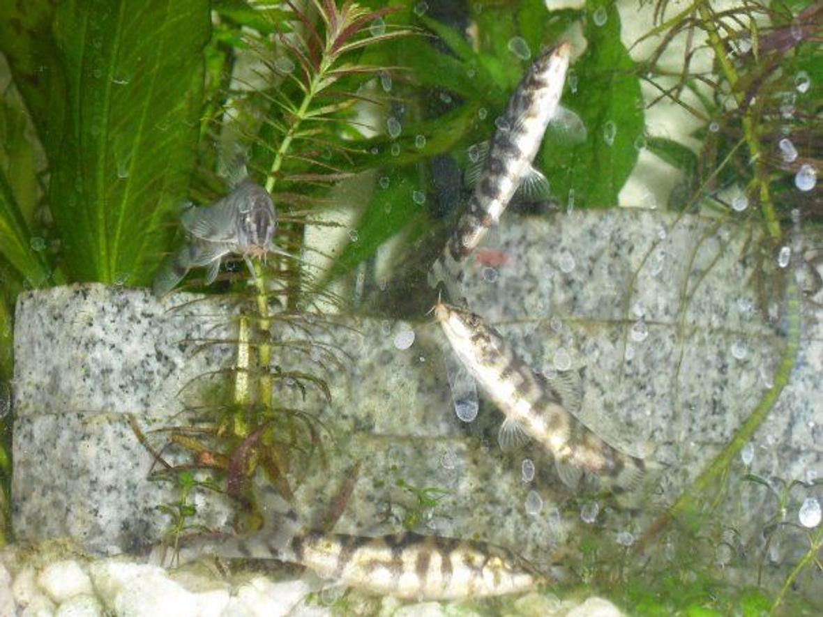 (2) Keyhole Cichlids, (3) Serpae Tetras, (4) Black Tetras, (5) Yoyo Loaches, (2) Corydoras, (2) Siamese Flying Foxes, (4) Oto cats, and (1) Bristlenose pleco.