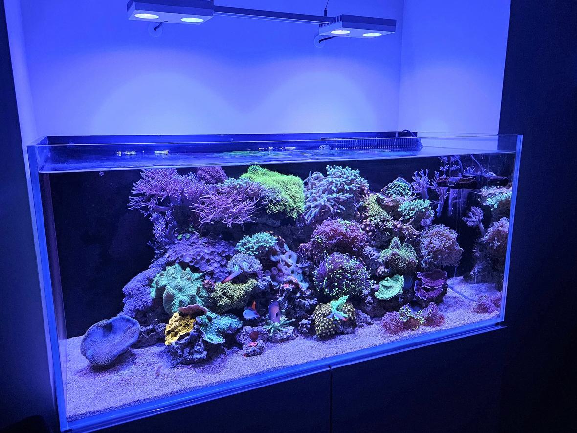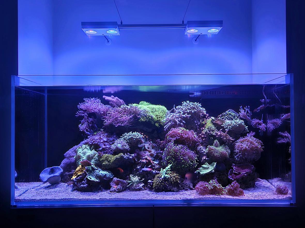 Neptunian cube2ft x 4ft 95 gal 35 gal sumpIcecap 120 gal protein skimmer AquaIllumination 32 hd x2 leds.