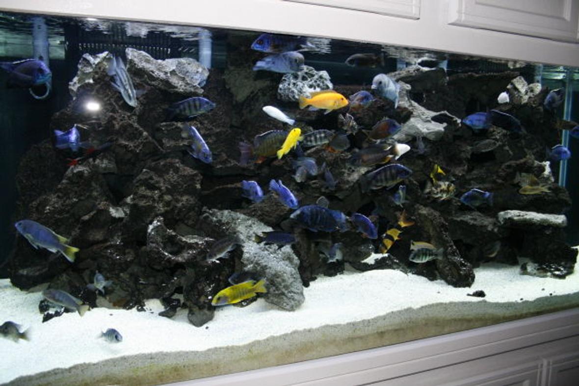 About 20 F1 various peacocks, 5 lemon lelupi, 4 Burundi Frontosas , 2 blue dolphins 5 red tailed sharks, 3 rainbow sharks, 5 F1 clown loaches, 3 Iranian red rainbows, 5 synodontis cats, I rhino plecko, I albino pleco, 1 fire eel, 1 large blue lobster