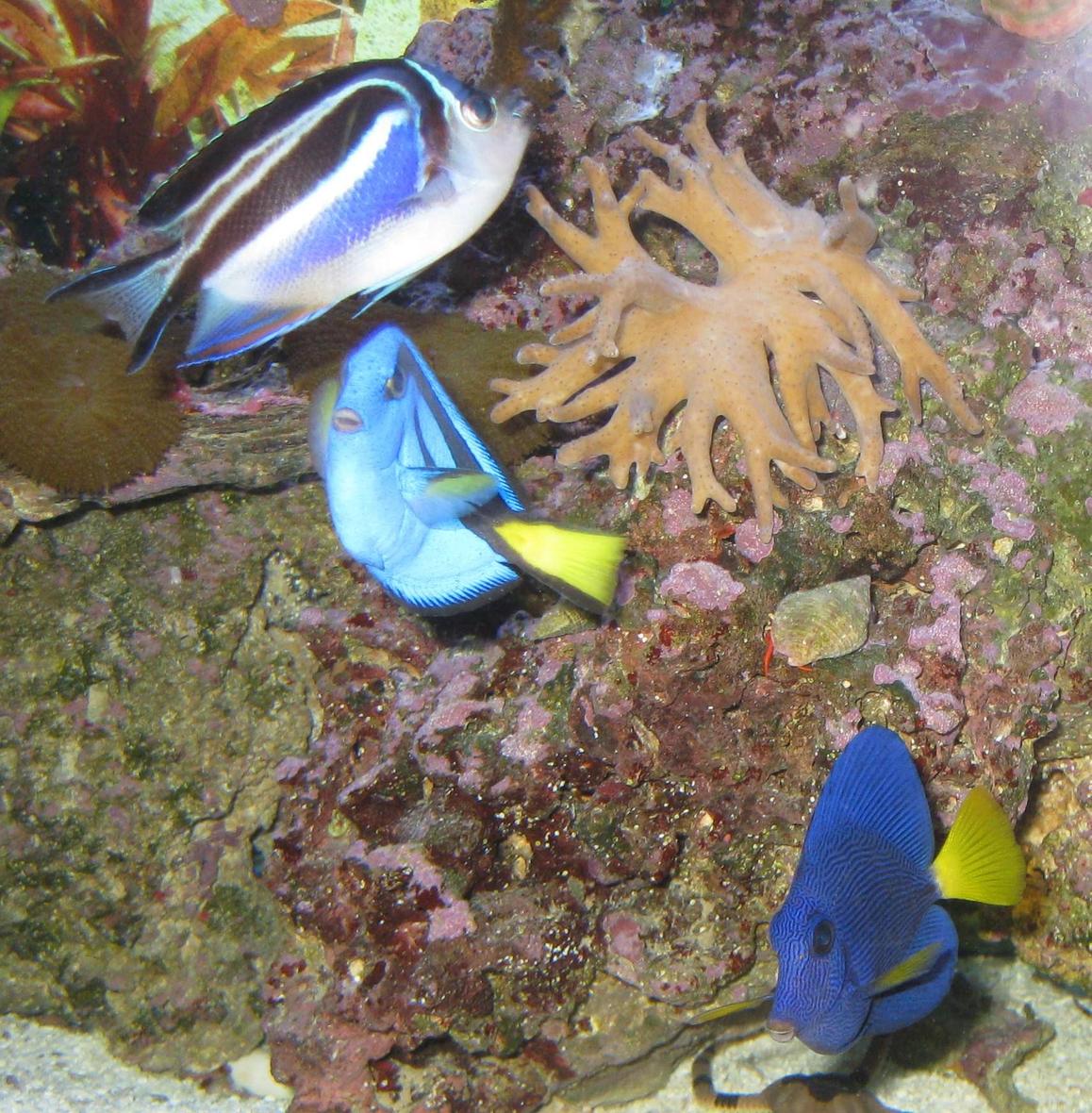 Purple Tang, Blue Hepatus Tang, Bellus Angelfish, Oscellaris Clown, Carpenter's Flasher Wrasse, Fire Goby x2, Scooter Goby, Goby & Shrimp pair