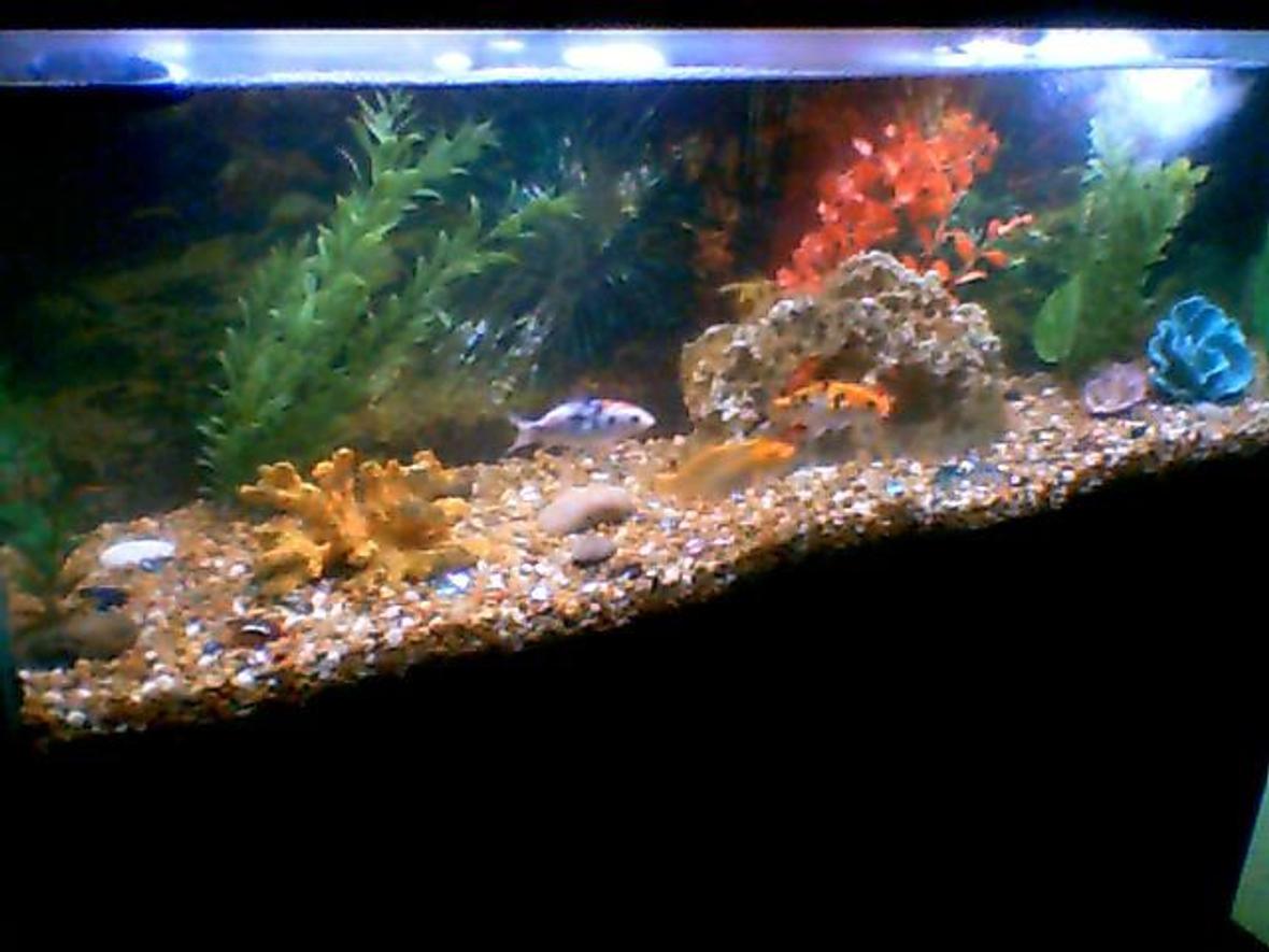 i always loved everything dealing with water. 2nd aquarium 1st was a 10 gal but didnt fulfill my needs had to go bigger. i've had this set up for 7months. want to paint the border of aquarium black and spray paint the stand black and replace the decor.