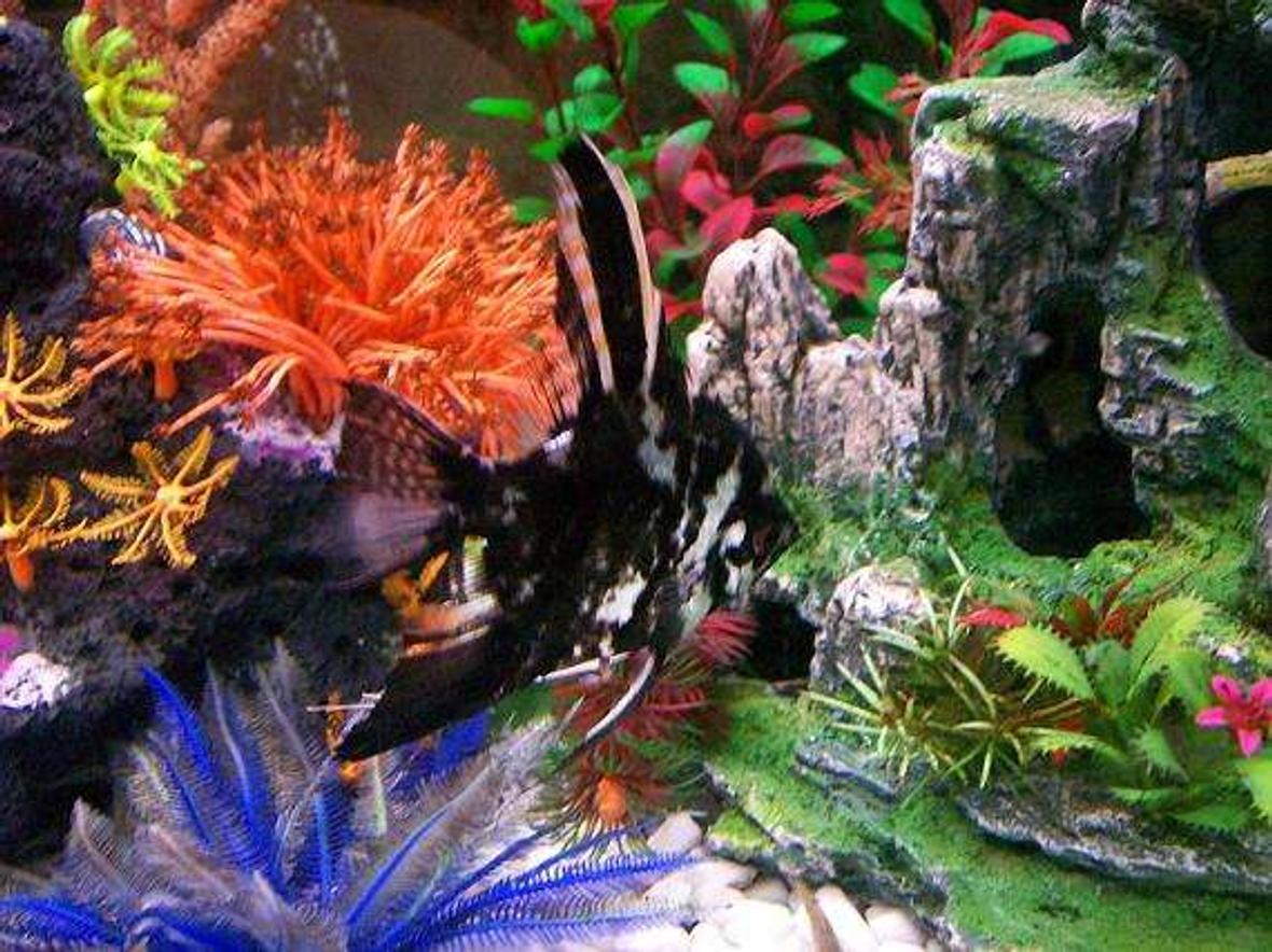 2 x Silver Sharks, 2 x Moonlight Gourami, 2 x Angelfish, 1 x Yellow gourami, 5 x Half Moon Tetras, 5 x Lemon Tip Tetras, 5 x Black Tip Tetras, 2 x Yellow feeder fish, 5 x Striped Barbs, 5 x Blue-eyed Tetras, 1 x Black shark, 1 x Black Knife Ghost fish, 3 x Khulie Loaches, 5 x Bristlenose catfish, 1 x Large cytradontus, 2 x Pictus catfish, 2 x Plecostamus..