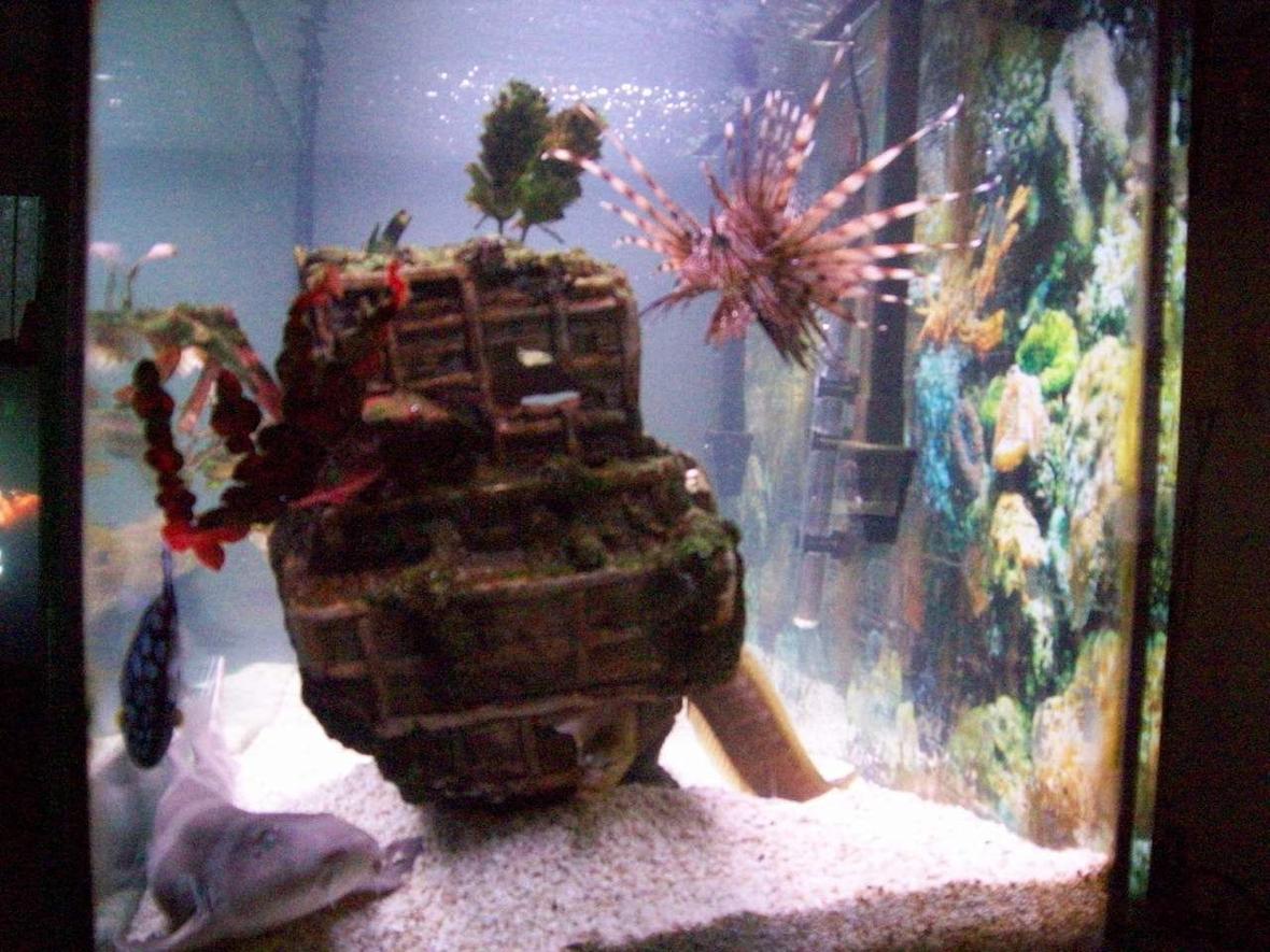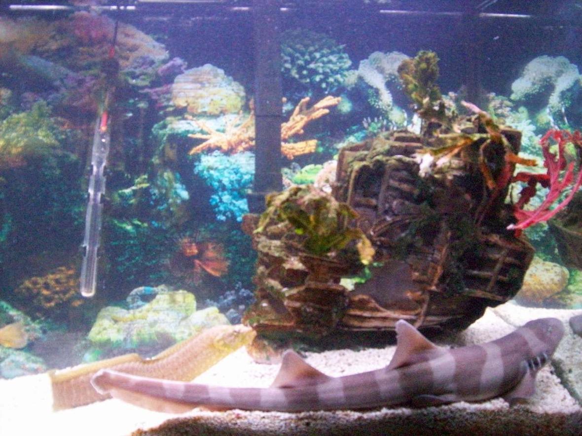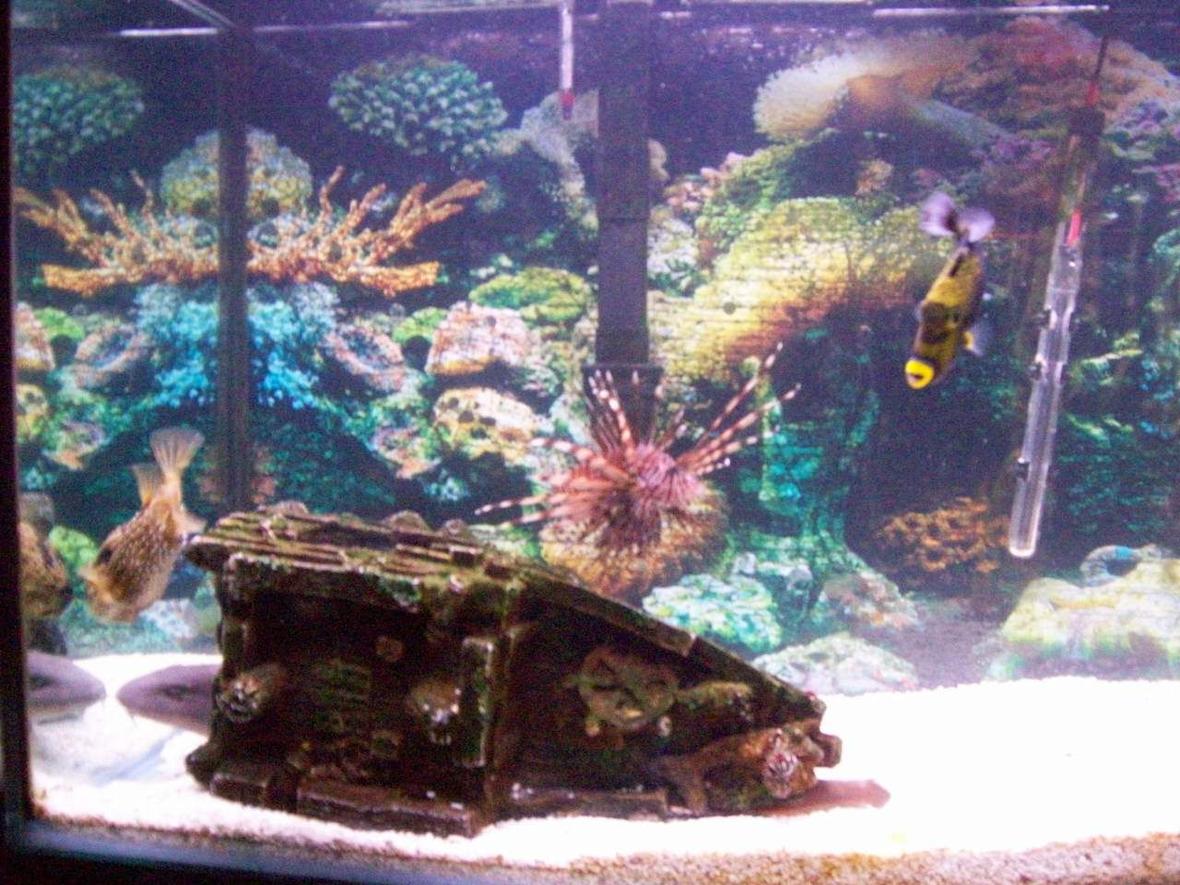 90 gallon salt water fish only tank with a lion fish,clown trigger,banded shark,pocupine puffer,green wolf eel, white snowflake eel, and 2 horse shoe crabs.