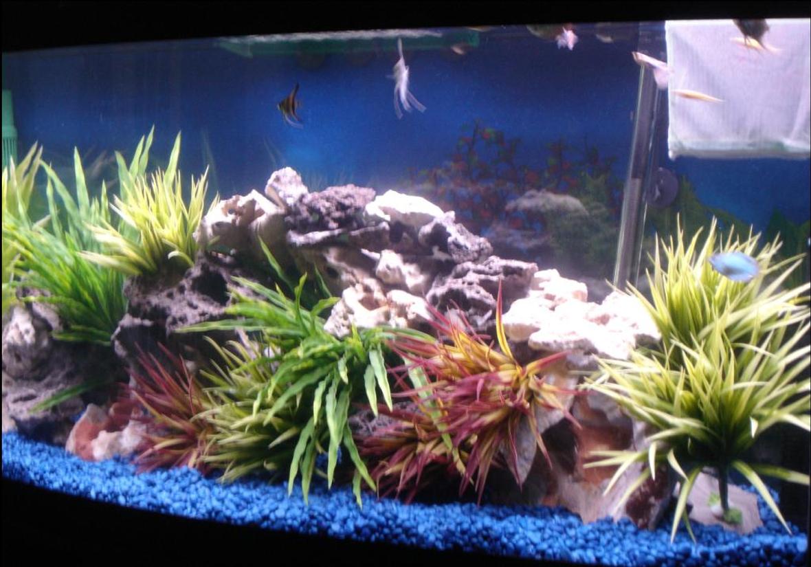 all plastic plants, and many excellent rocks from my local fish outet