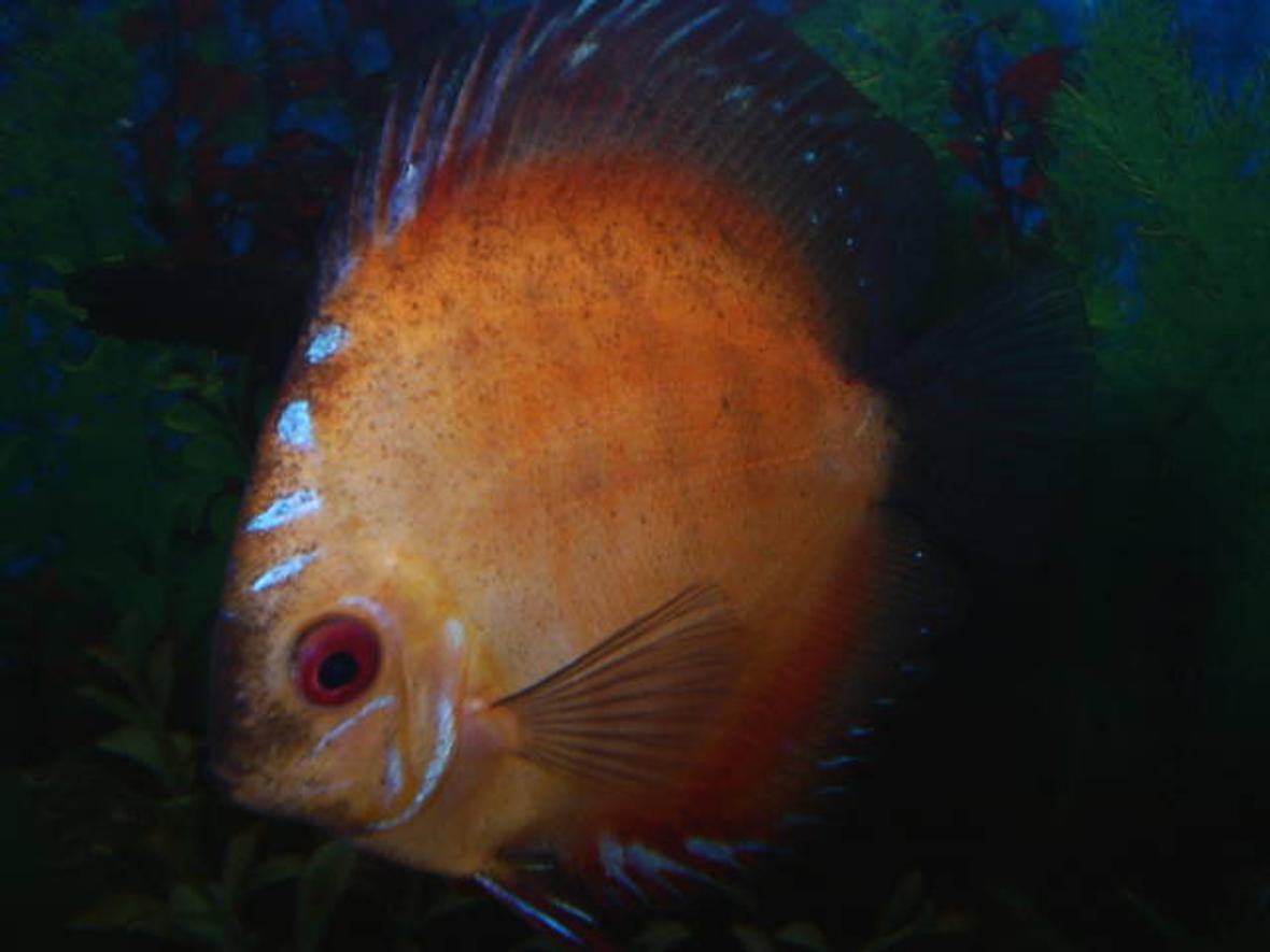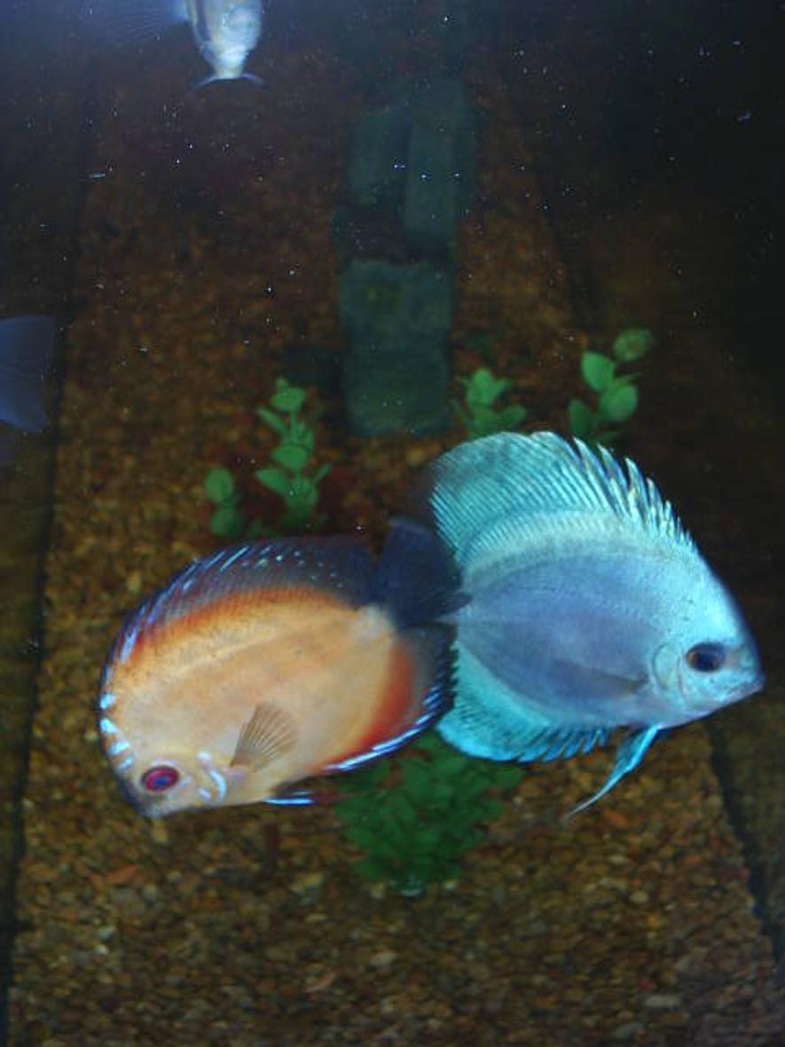 Just your normal 55 gallon tank, with 6 Discus ( 1 Blue Hi-fin cobalt, 4 red turqouse, 1 Red Pigeon Blood, 1 cory cat for algea)
