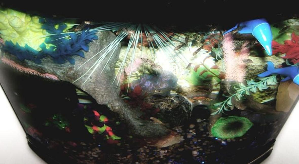 Convicts- 1 mom, 1 dad, & 20 adult babies in 26 gallon bow tank. Very hardy fish!