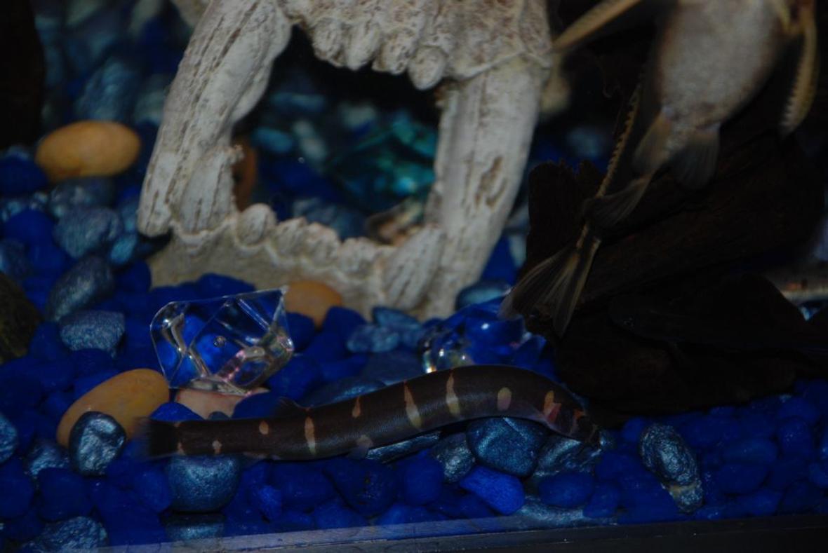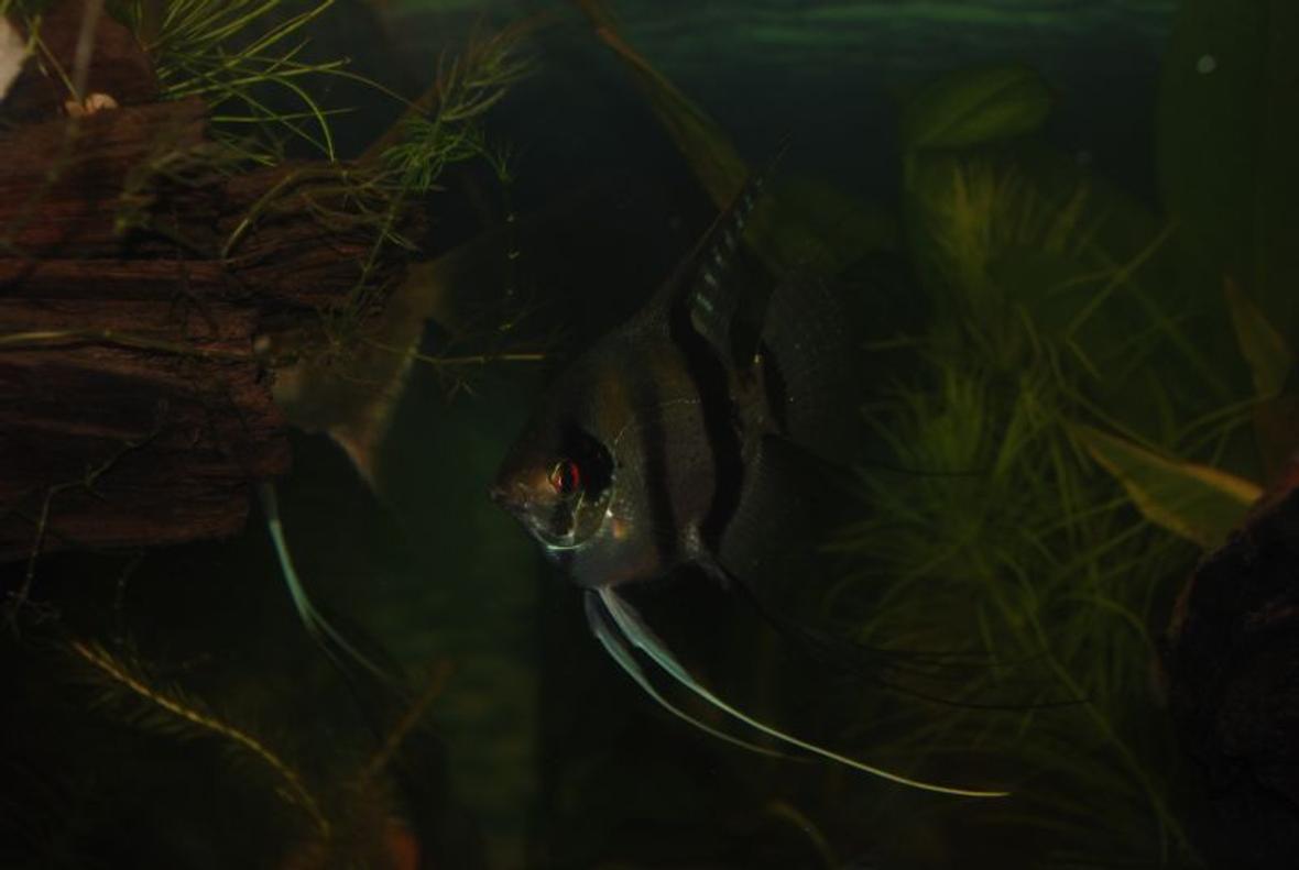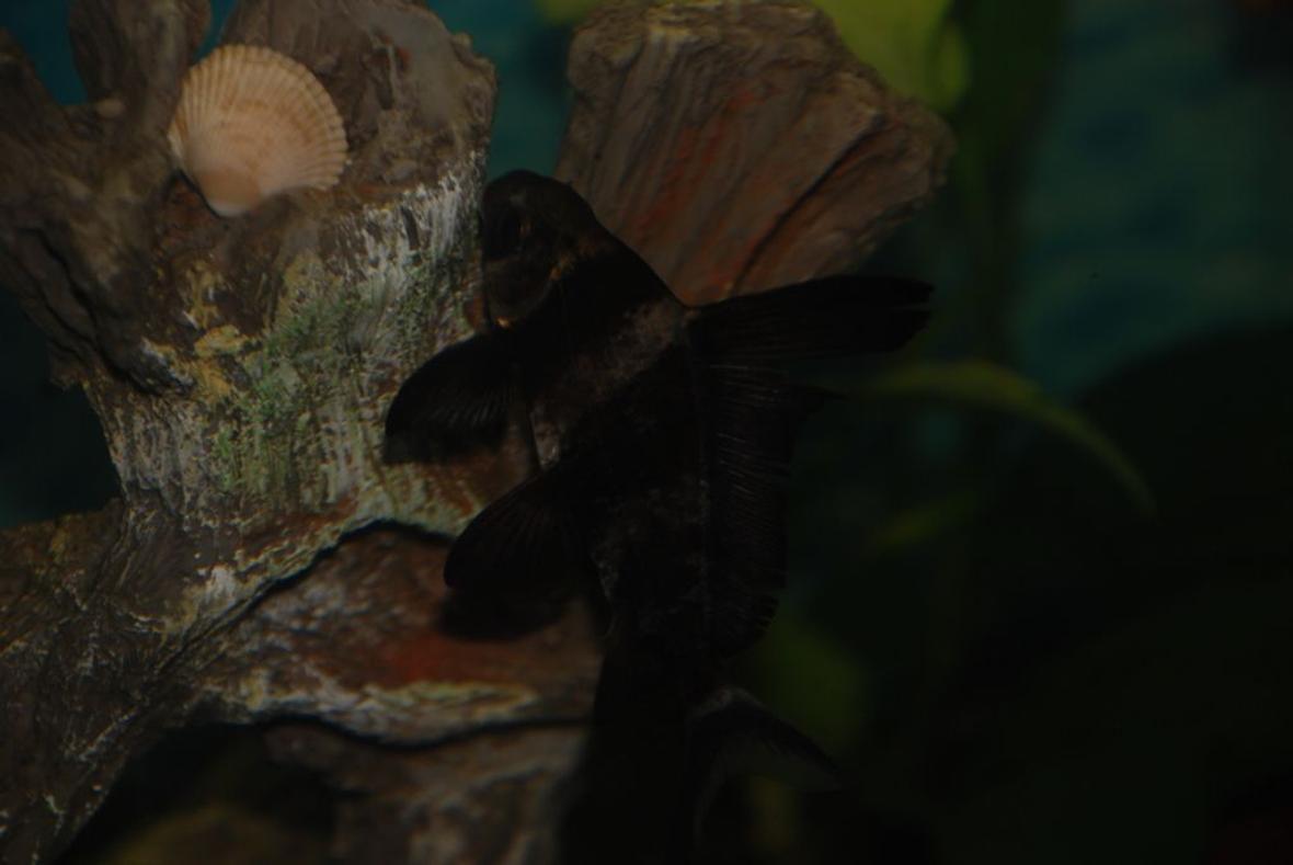 It's a glass 30 x 22 x 12 37 Gallon Marineland Tank. It's the biggest I can realistically fit into my Manhattan 6 floor walk up. It's tall dimension makes it seem bigger, though. I use a Tetra Whisper 45 that's nice & quiet since the tank is at the foot of my bed. All natural drift, plants, & rock, except for the vine ornament that has a hose fed into the bottom so it erupts bubbles every couple minutes. I put a real seashell on the top that fits into the hole & moves up & down like a hatch. I do have another ornament. The skull, which also burps a bubble every few minutes. A bubble wall along the entire back wall also helps keep it aerated. The fish chew through the real plants but I keep planting more & trimming the old. The tank is only a couple months old. Started it in July after a ten gallon hex & a small 3 gallon. I don't remember the brand of the hex but I found it at Petland & I hadn't seen it anywhere else or since, except there. It's a glass hex 18 inches tall with 7 inch panes that make it 13 inches wide. It also has a skull - this one more open so I can see them play in there but everything else is natural: drift & plants. I've been experimenting with different colorful rocks. The hex is mainly my Kuhli tank. They frolick in the flexible bubble wall that wraps around 3 panes. Plus a transparent knife, glass, farwella, hoplo cats, & lots of tinys - tetras, danios, & flying fox. And a butterfly & horse face loaches. The big tank is ruled by the 2 angels. I have dojo loach, spiny eel, raphael cat, dolphin loach, a bigger farwella cat, African butterfly, clown knife, & a goldfish that refused to die like all the other fish when I was first setting up my little 3 gallon. The angels survived from then as well. That was the beginning of June & it's kind of become a hobby since.